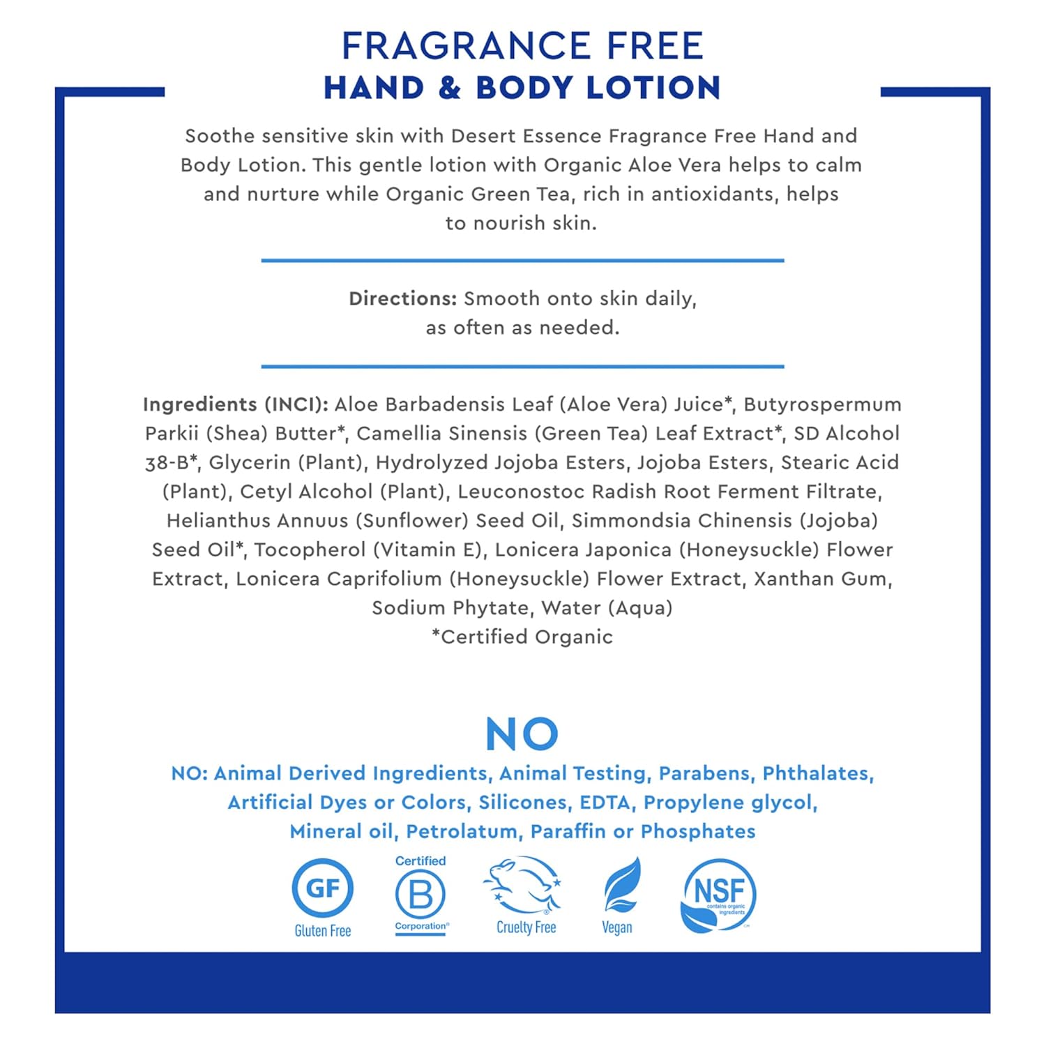 Desert Essence Fragrance Free Hand & Body Lotion - 8 Fl Ounce - Soothing - Aloe Vera - Shea Butter - Green Tea - Coconut Oil - Jojoba Oil