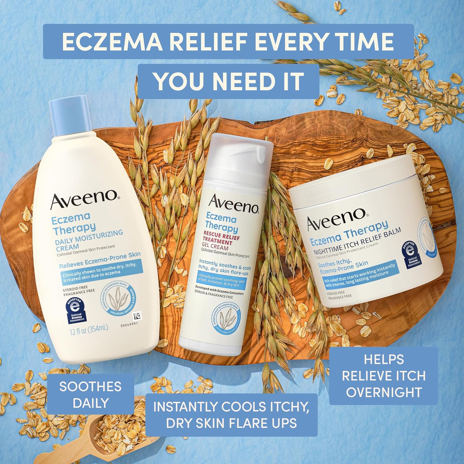 - 12 oz tube of Aveeno Eczema Therapy Daily Moisturizing Body Cream from the #1 dermatologist-recommended eczema moisturizer brand. Enriched with colloidal oatmeal & ceramide, it is clinically-proven to relieve dry, itchy, irritated skin due to eczema