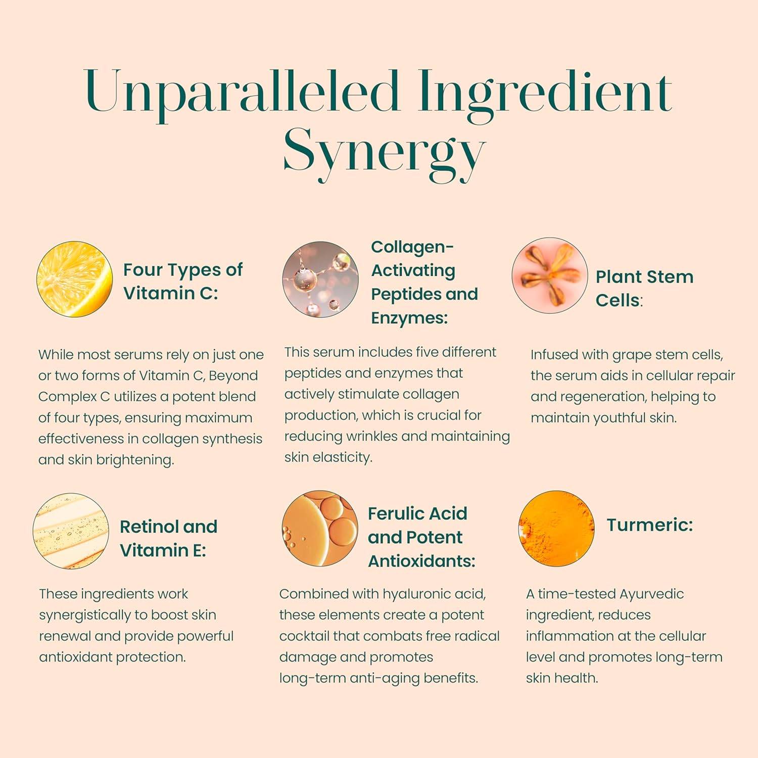 - π Unparalleled Ingredient Synergy: This serum features a potent blend of four types of Vitamin C to maximize collagen synthesis and brighten skin. Enriched with five collagen-activating peptides and enzymes, it reduces wrinkles and enhances skin elasticity. Infused with grape stem cells, it supports cellular repair, while Retinol and Vitamin E boost renewal and antioxidant protection. Ferulic Acid and hyaluronic acid provide powerful defense against free radicals and promote lasting anti-aging benefits.