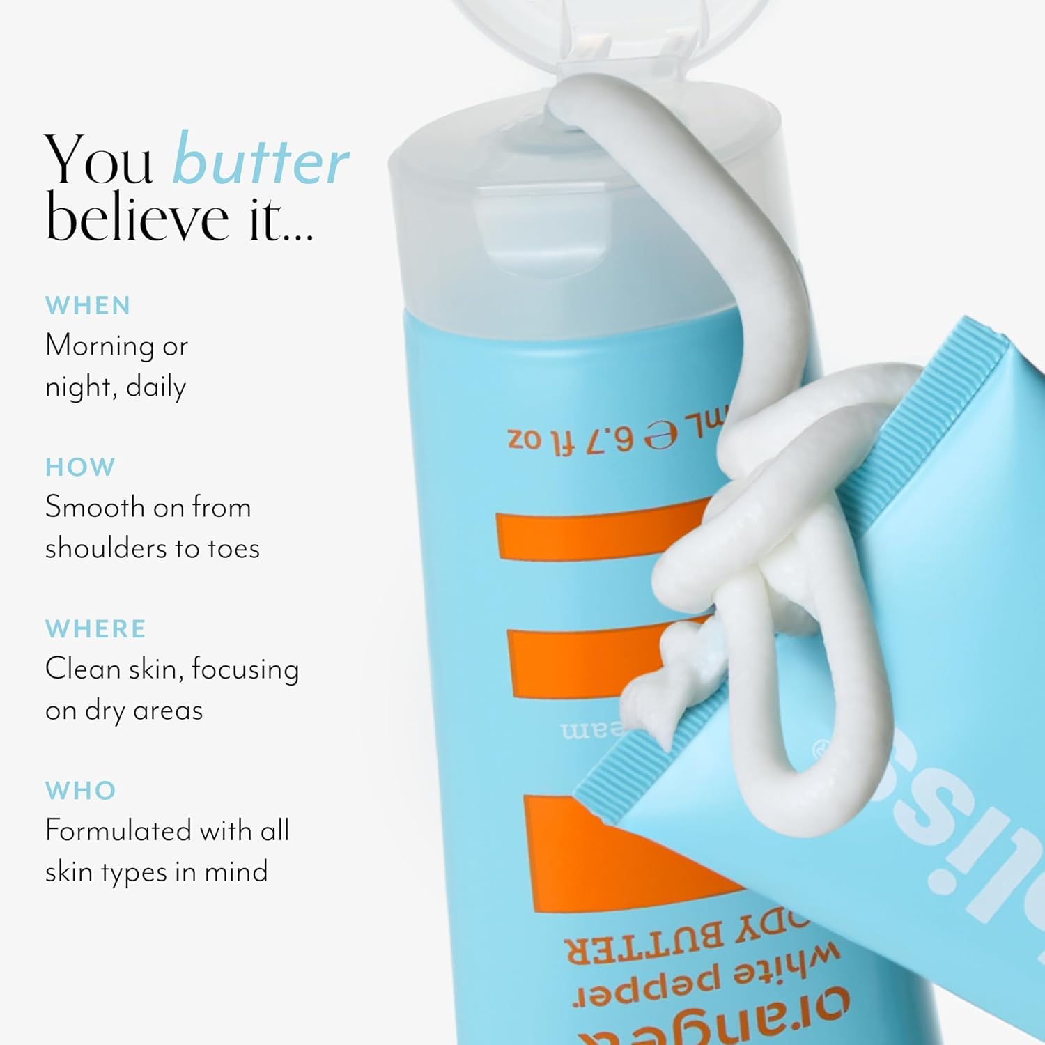 - BLOOD ORANGE AND WHITE PEPPER BODY BUTTER: The cult favorite bestseller! Envelope your body (and senses!) in this luxurious blood orange & white pepper scented body lotion