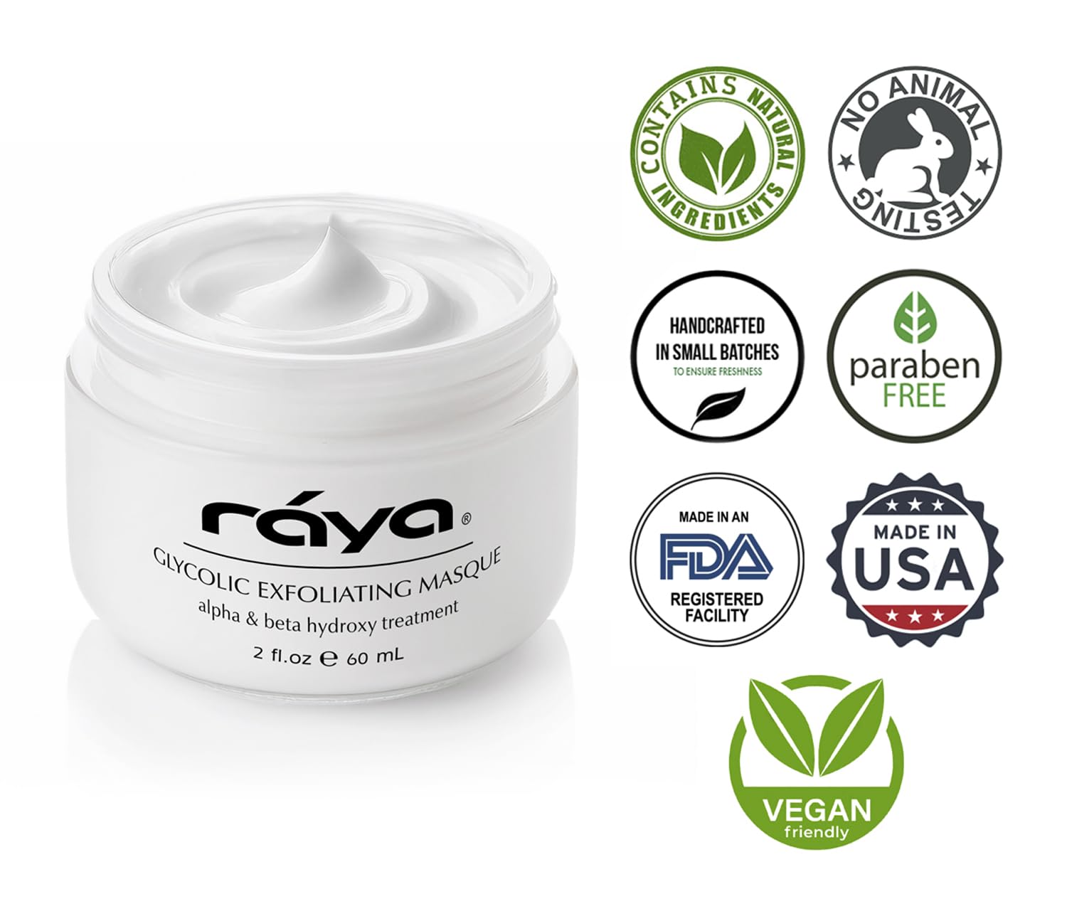 Raya Glycolic Exfoliating Masque with AHA and BHA (G-611) | Exfoliating Facial Treatment Mask for All Non-Sensitive Skin | Made with Alpha and Beta Hydroxy Acids