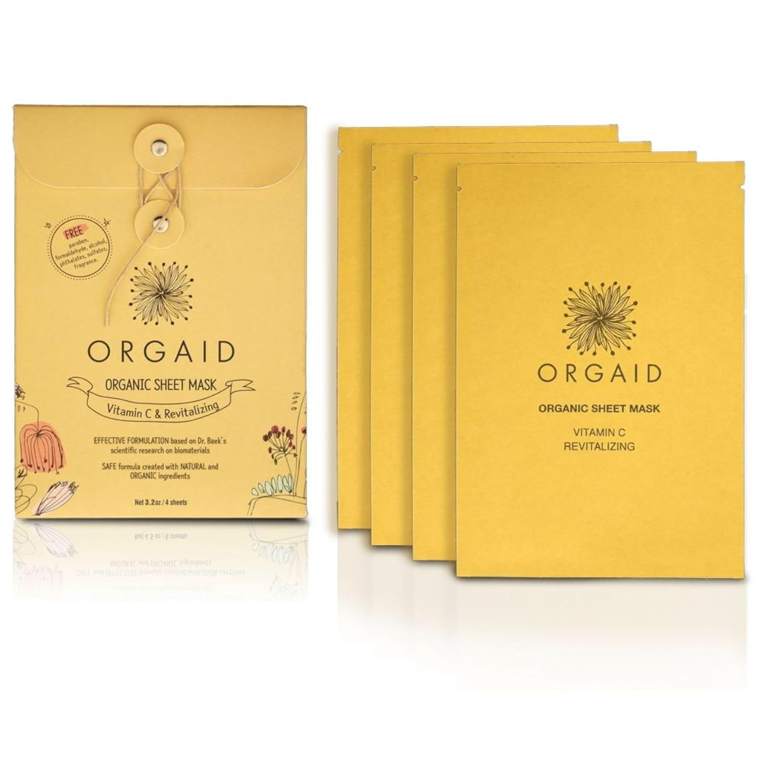 ORGAID Organic Sheet Mask | Made in USA (Vitamin C & Revitalizing, pack of 4)