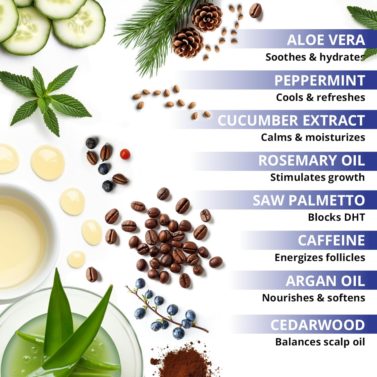 - Advanced Botanical Complex We combined Saw Palmetto, Biotin, Niacin, Caffeine, Arginine, Apple, Argan & Grape Stem Cells for strong, resilient hair. Itโs the perfect hair thickening shampoo or shampoo for hair growth without harsh chemicals or parabens.