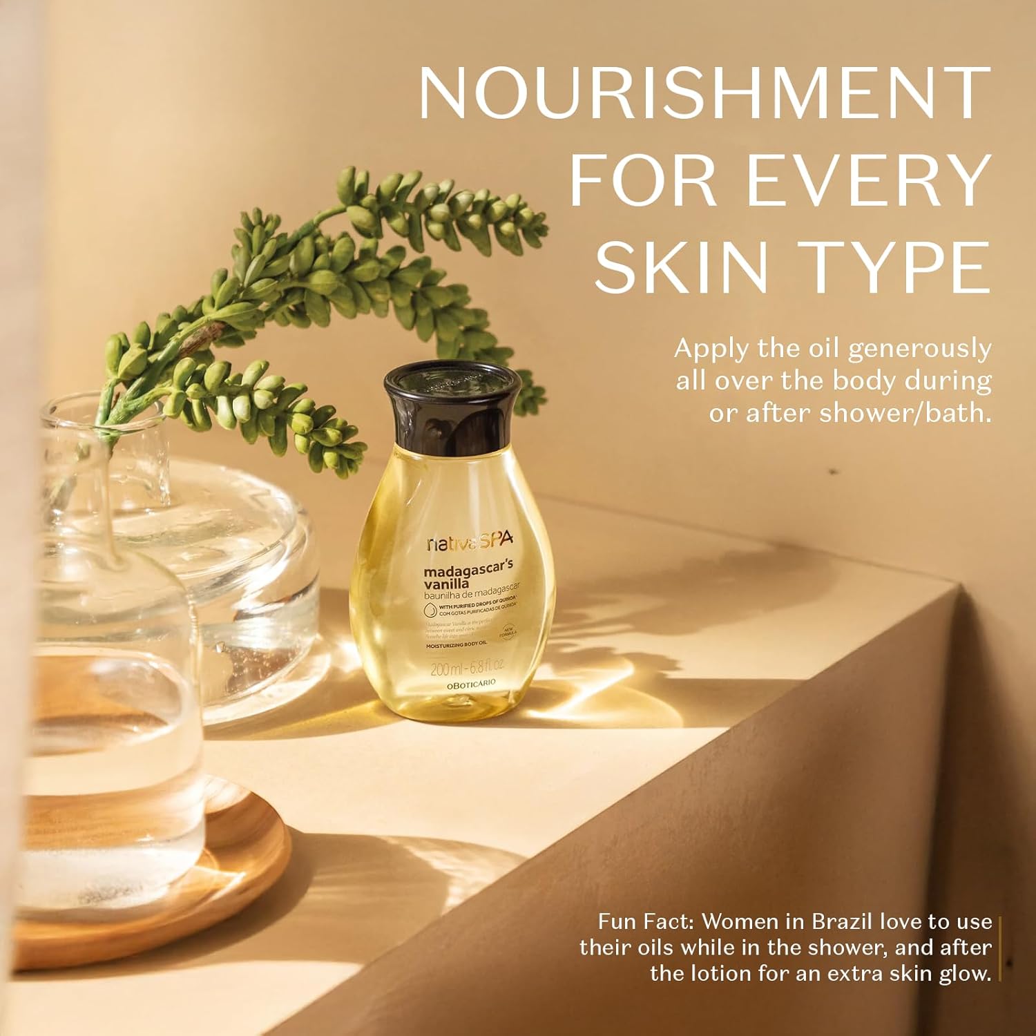 Nativa SPA by O Boticário, Madagascar Vanilla Body Oil, Soothing & Moisturizing, 6.8 Ounce