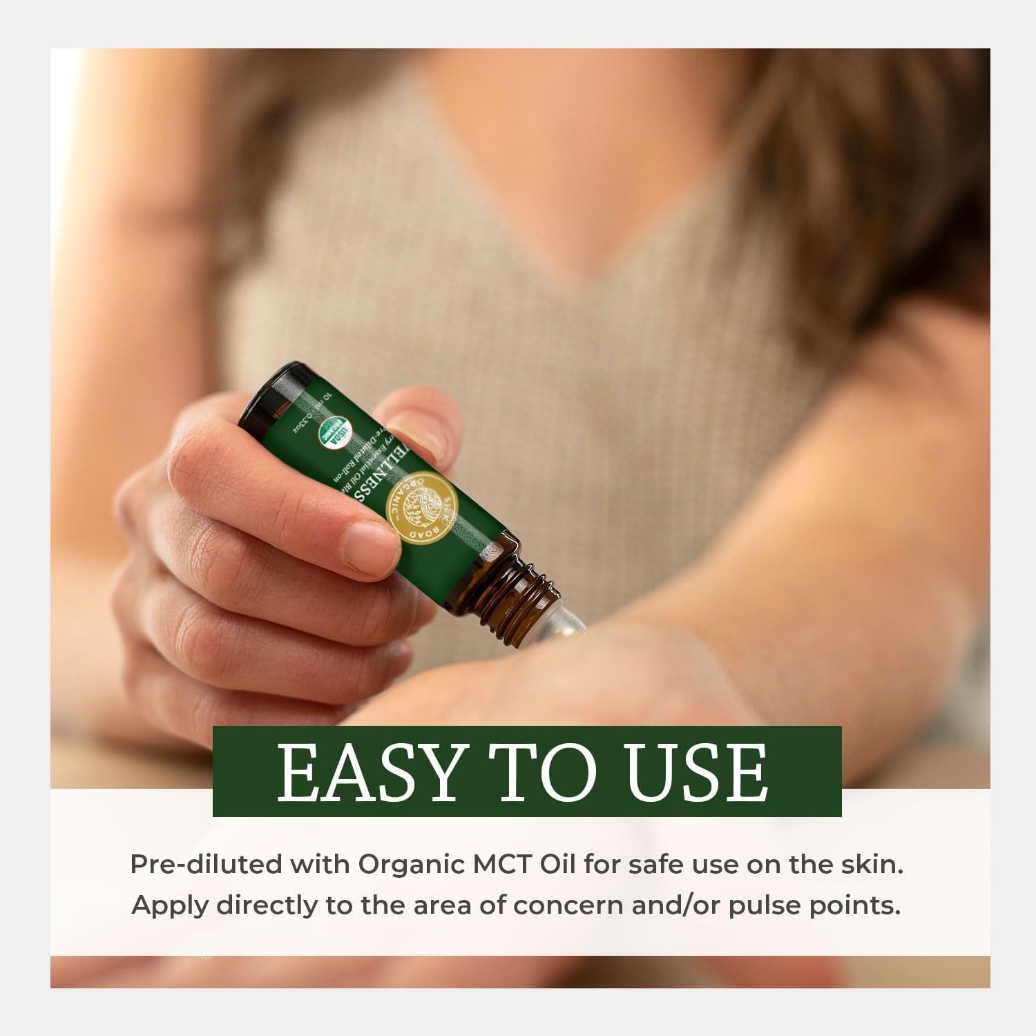 - SAFE & HIGH QUALITY: Bottled in the USA under USDA National Organic Program (NOP) guidelines, our pure essential oil contains no water, alcohol or other additives. Pre-diluted with Organic MCT (fractionated coconut) oil for safe use on the skin.