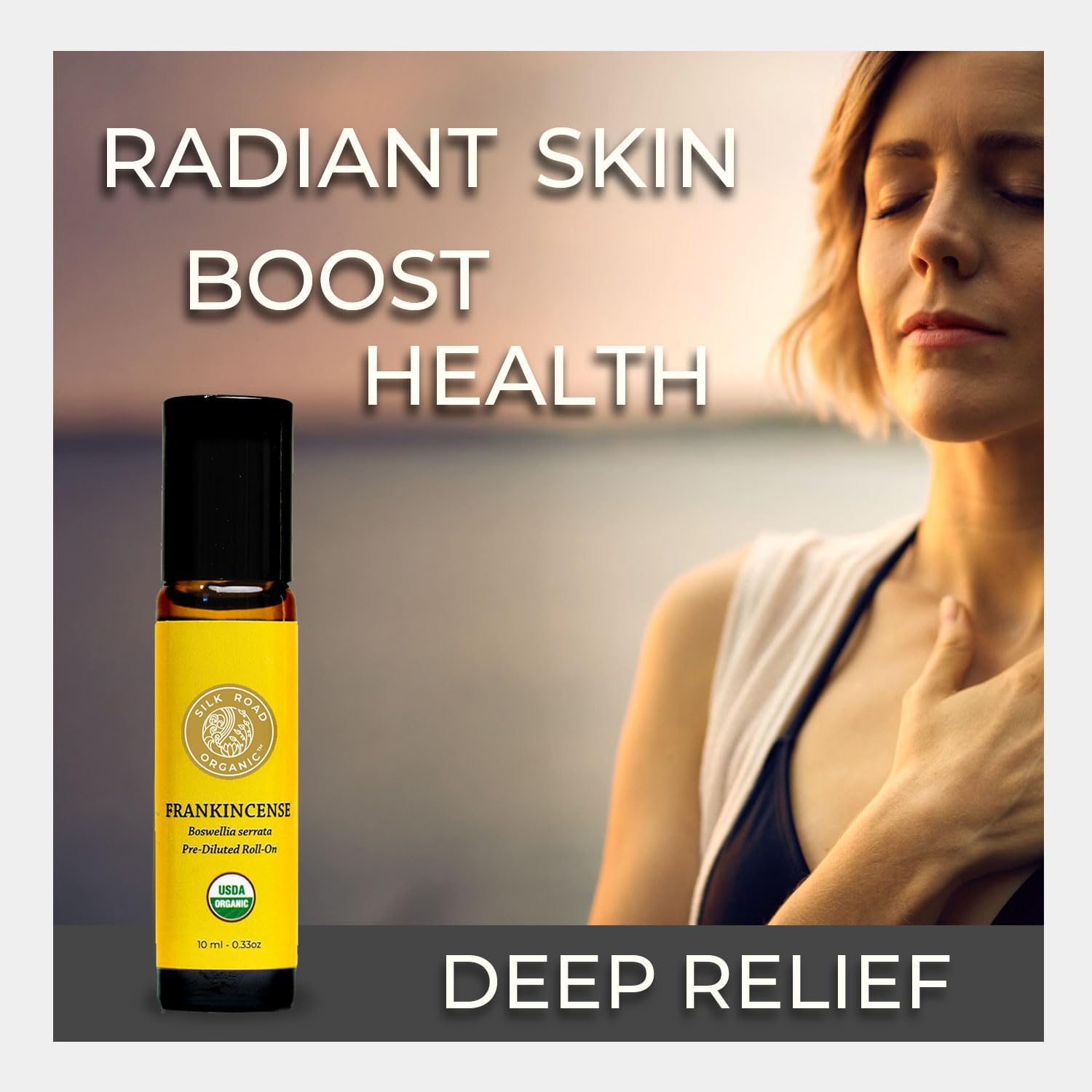 Silk Road Organic Frankincense Serrata Essential Oil Roll on, 100% Pure USDA Certified Aromatherapy for Skin Health, Aging, Fine Lines & Body Aches - 10 ml Roller