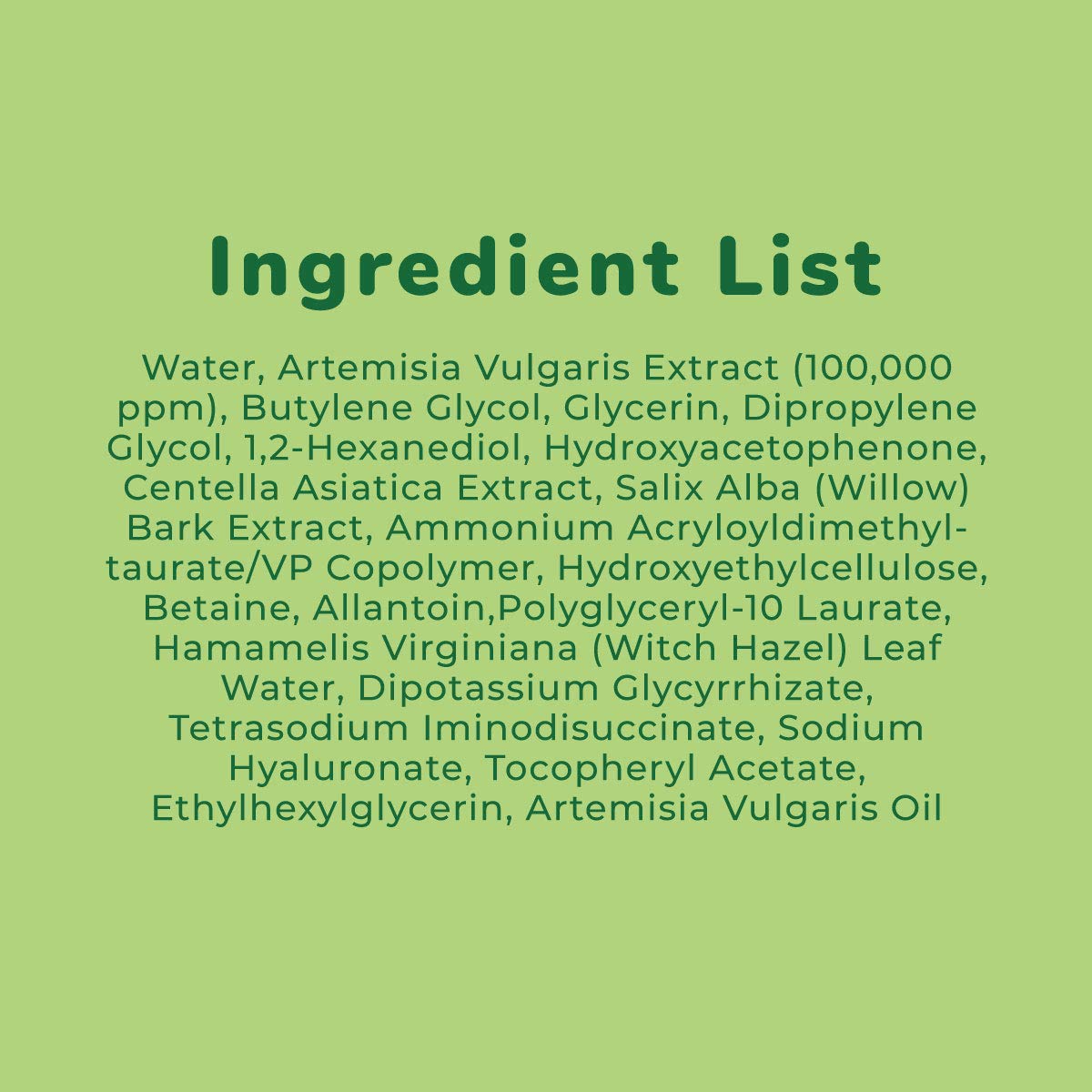- π ARTEMISIA VULGARIS EXTRACT to calm redness and irritation. Artemisia is known for helping soothe irritation and protect the skin cells from sun damage. Great for all skin types and for when you're skin needs a soothing treat.