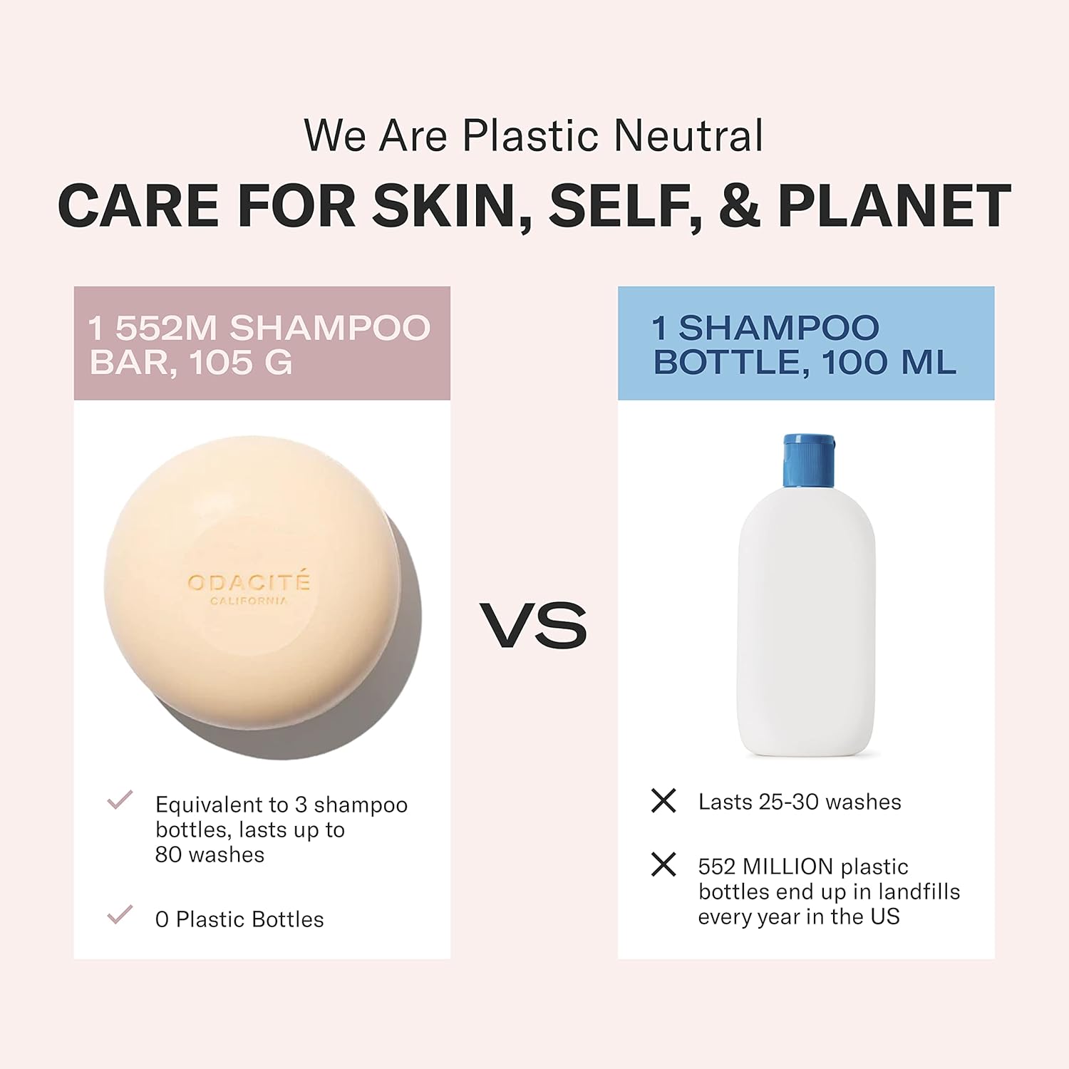 - Powered by Argan & Castor Oil: Odacité 552M Argan + Coconut Soap-Free Shampoo Bar has all the perks of salon-quality shampoo without the plastic pollution. Cleanses and purifies hair while nourishing strands and boosting volume. 3.7 oz.