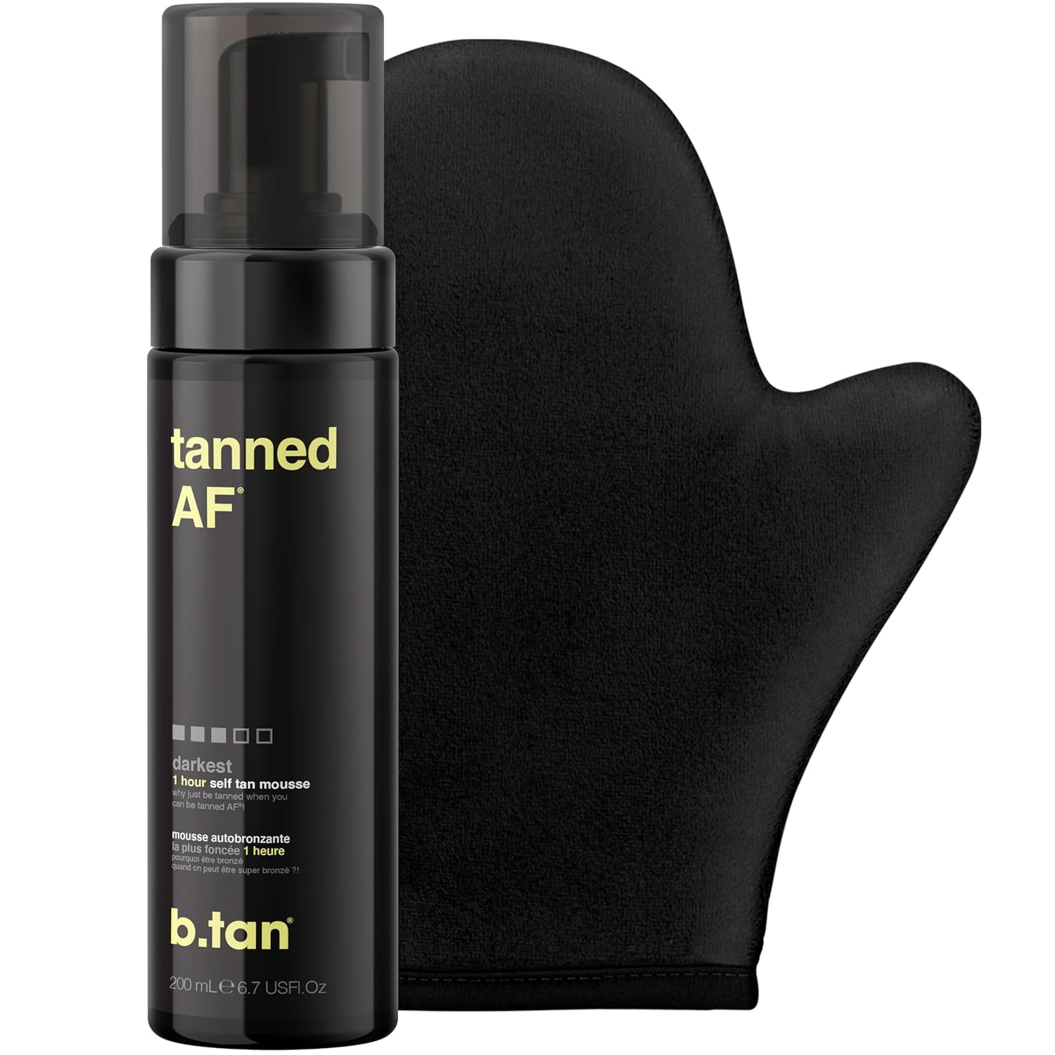 b.tan Dark Self Tanner Kit | Get Tanned Bundle - Self Tanner Mousse w/Tanning Mitt Applicator, 1 Hour Sunless Tanner, Fast Glow, No Fake Tan Smell, Vegan, Cruelty Free, 6.7 Fl Oz