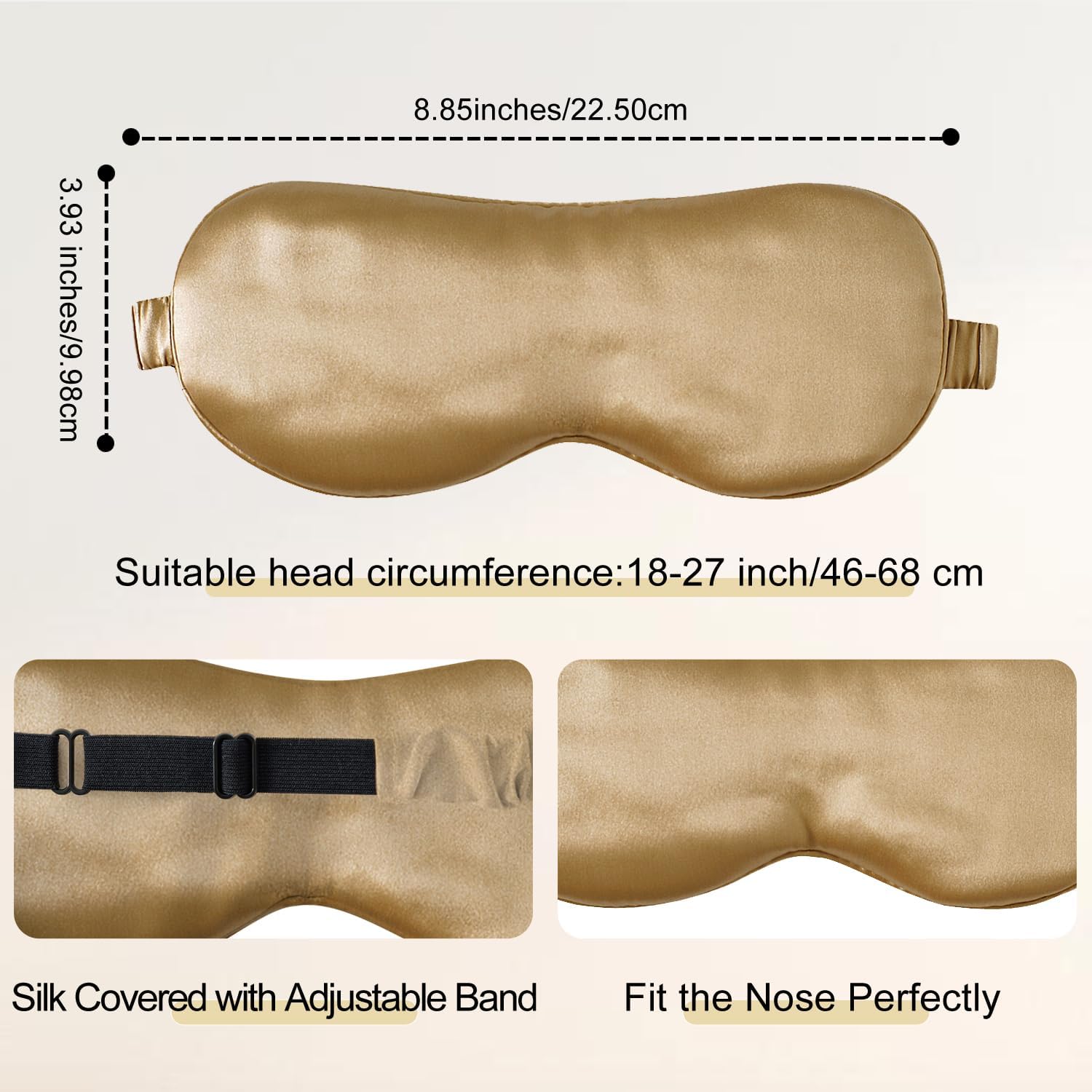 ZIMASILK Adjustable 100% 22 Momme Mulberry Silk Sleep Mask for Sleeping, Filled with Premium Mulberry Silk, Softest & Breathable Eye Sleeping Mask (Golden)