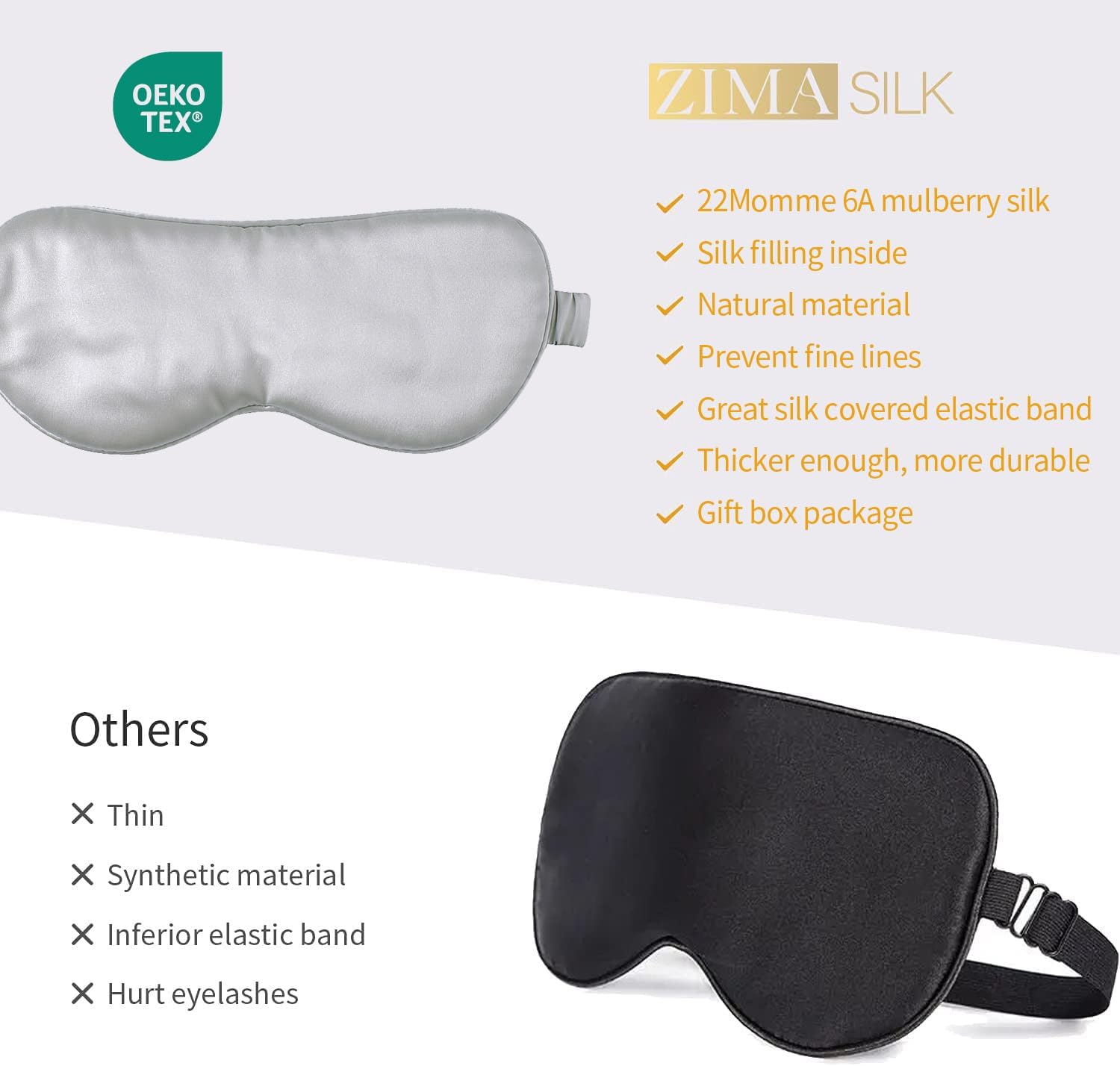- ✅Special Gift & No Worry After-Sale Service: Perfectly packaged in a luxury gift box, the Zima 22MM silk sleep mask is a very luxurious gift to send someone. You can now buy 1 for everyone you love! Experience the luxury of Zima 22MM silk eye mask. We believe that you will love this sleeping mask as we do. If there is any quality issues, please feel free to contact us, we will make it right for you within 24 hours.
