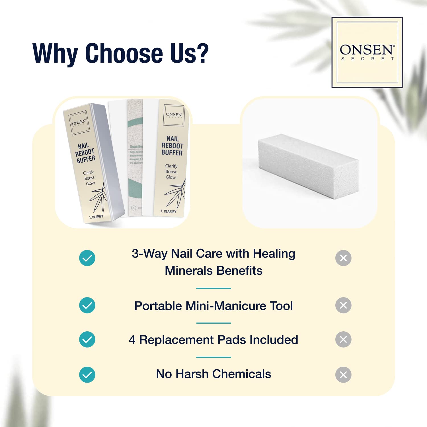 - 【STRENGTHENS NAILS】- Onsen nail buffer for natural nails restores and strengthens damaged or weak nails and give them the boost they need to stay strong and maintain their natural beauty
