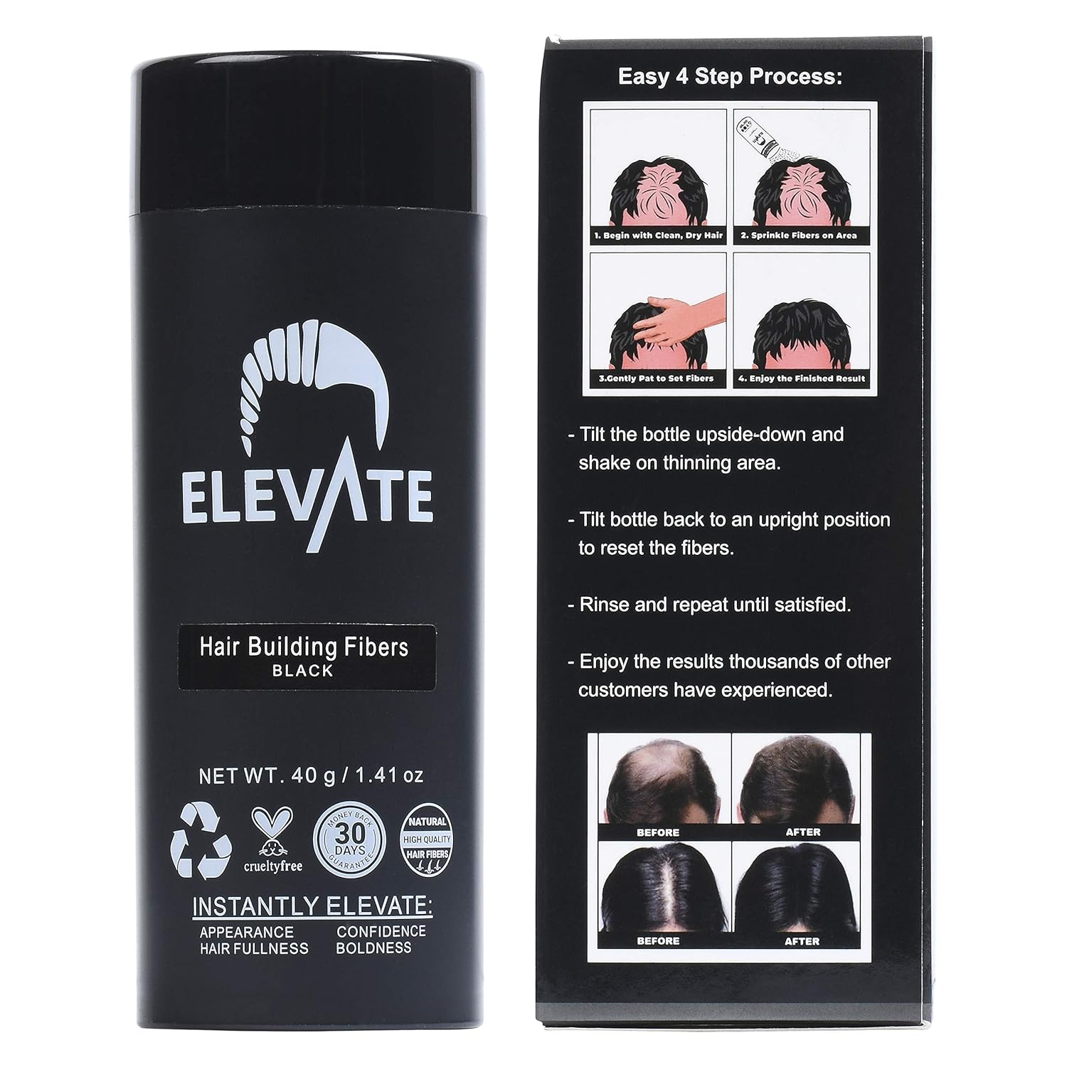 - ELEVATE 100% SATISFACTION GUARANTEE: Try the Elevate Hair Fibers Kit and if you don’t love it, we will refund you right away! Comes with a 100% Customer Satisfaction Hassle Free Money Back Guarantee!
