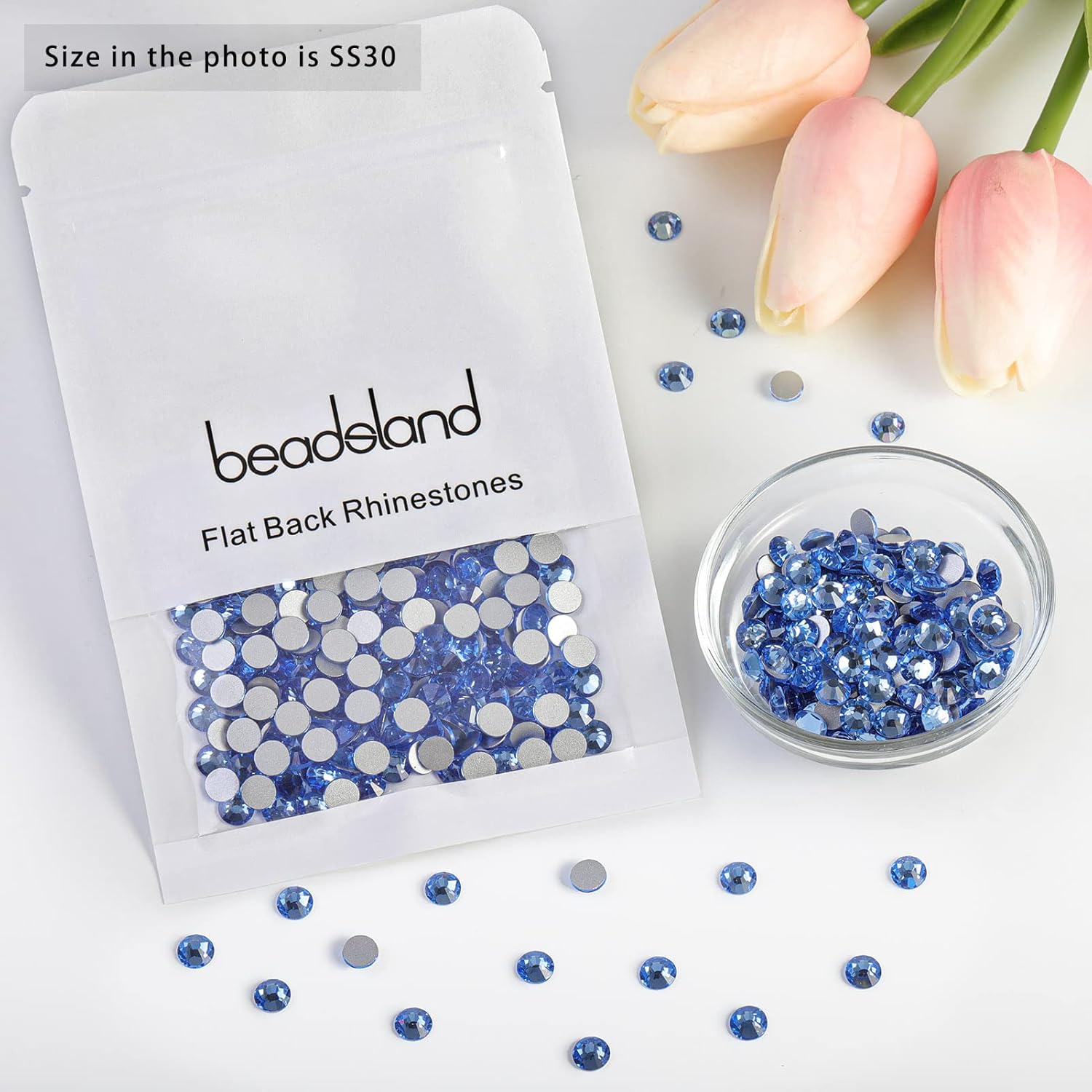 - Pack of 288 Pieces Light Blue(Light Sapphire) Rhinestones SS30,Size 6.3-6.5mm.