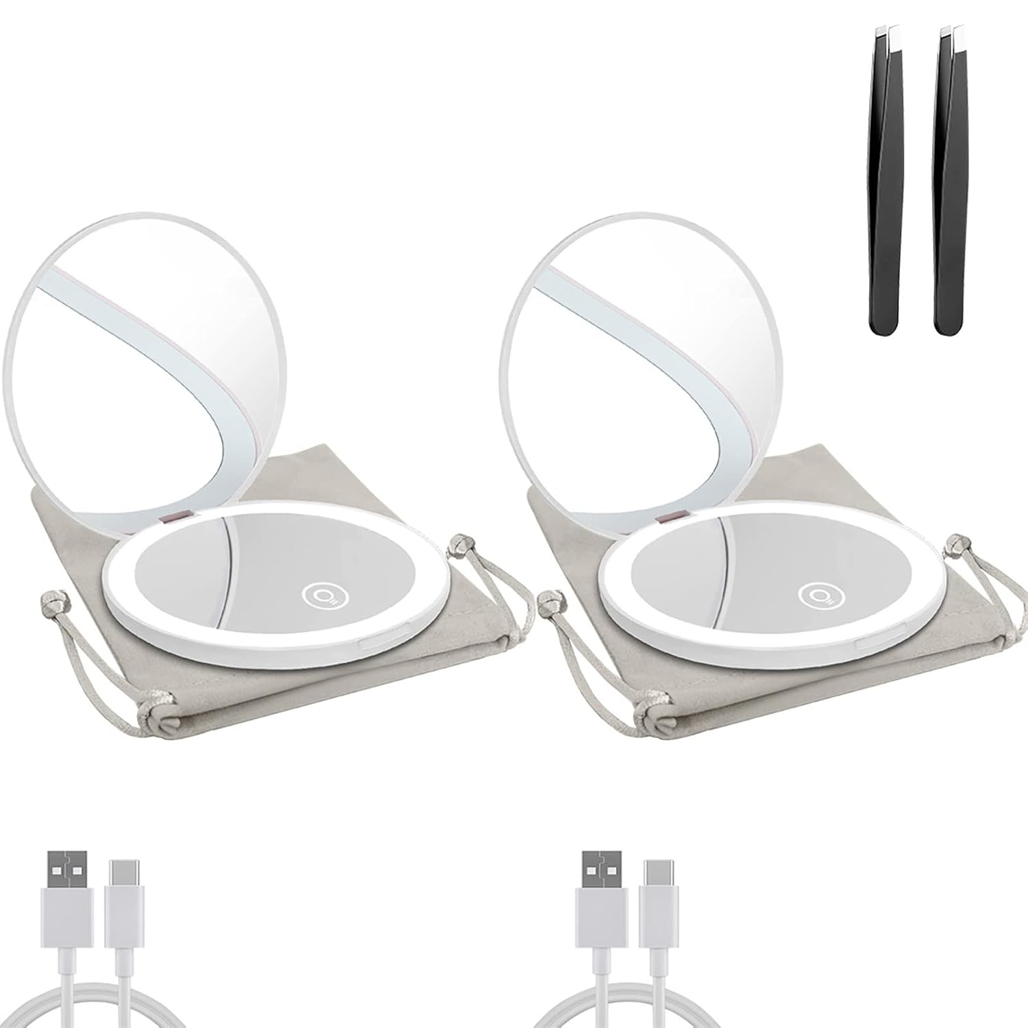 • 【What You Get & Product Guarantee】: Including: 1*Lighted Makeup Mirror 1*USB Type-C Cable(Note: The acceptable power adapter is 5V,1A-2A.)1*User Manual 1*Storage bag 1x Tweezer. FCC, CE, ROHS approval. 12 months warranty and 24-hour friendly customer service.