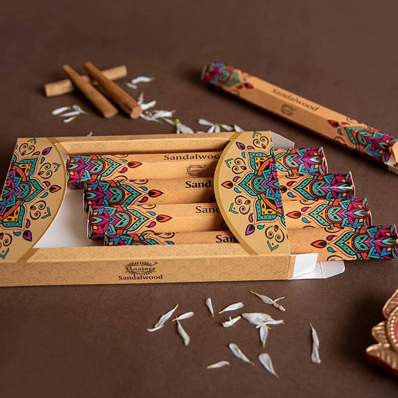 - ๐ PRODUCTโ Gift Pack of 15 Sticks x 5 packs Sandalwood Incense Sticks. Stick Length 8 to 8.5 inch, Diameter--0.1 inch, each natural stick burns for 40-45 minutes (indoor environment)