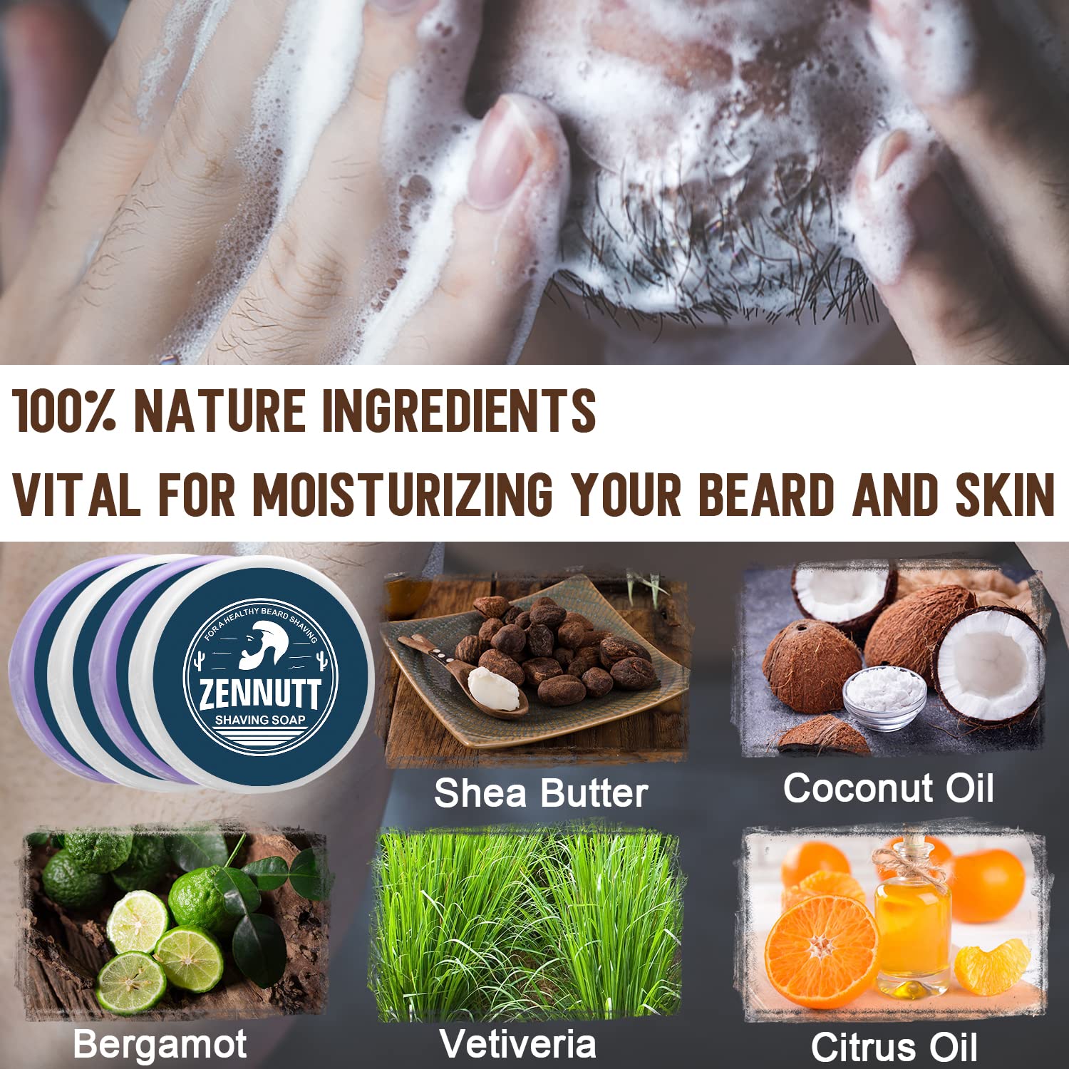 - 4 Packs Scented Shaving Soaps: 2 Pack Variety,Each Pack 1 oz.Manly Scents Shaving Soaps with Sweet Orange/Sandalwood scent,The light citrus smell is pleasant,the Sandalwood smells manly.Great for long time use.our most manly scents to leave that special someone in love with your face.Want him to be more outstanding?Give this as a birthday presents,holiday gifts.