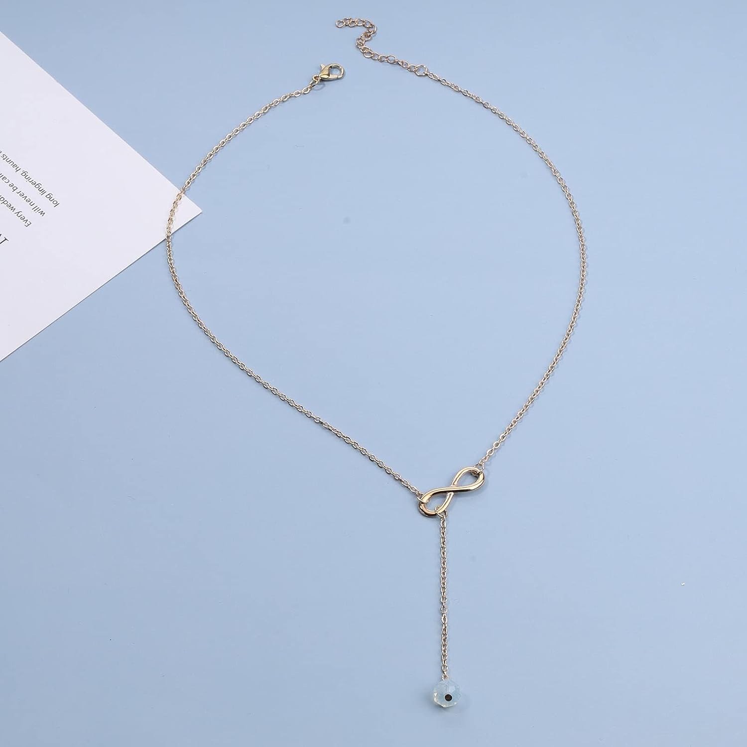 Boho Crystal Infinity Necklace Gold Y Necklace Minimalist Crystal Y Lariat Necklace Chain Jewelry for Women and Girls