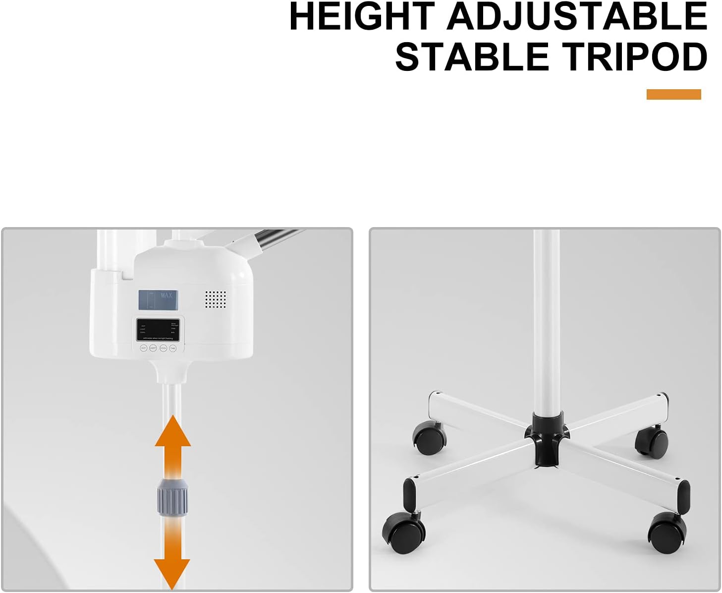 - ROTARY AND MOVEABLE - 360 degree rotary spray pipe allows to moisturize your face when you are sitting or lying; Rolling wheels makes it convenient to move this facial skin care machine around the room