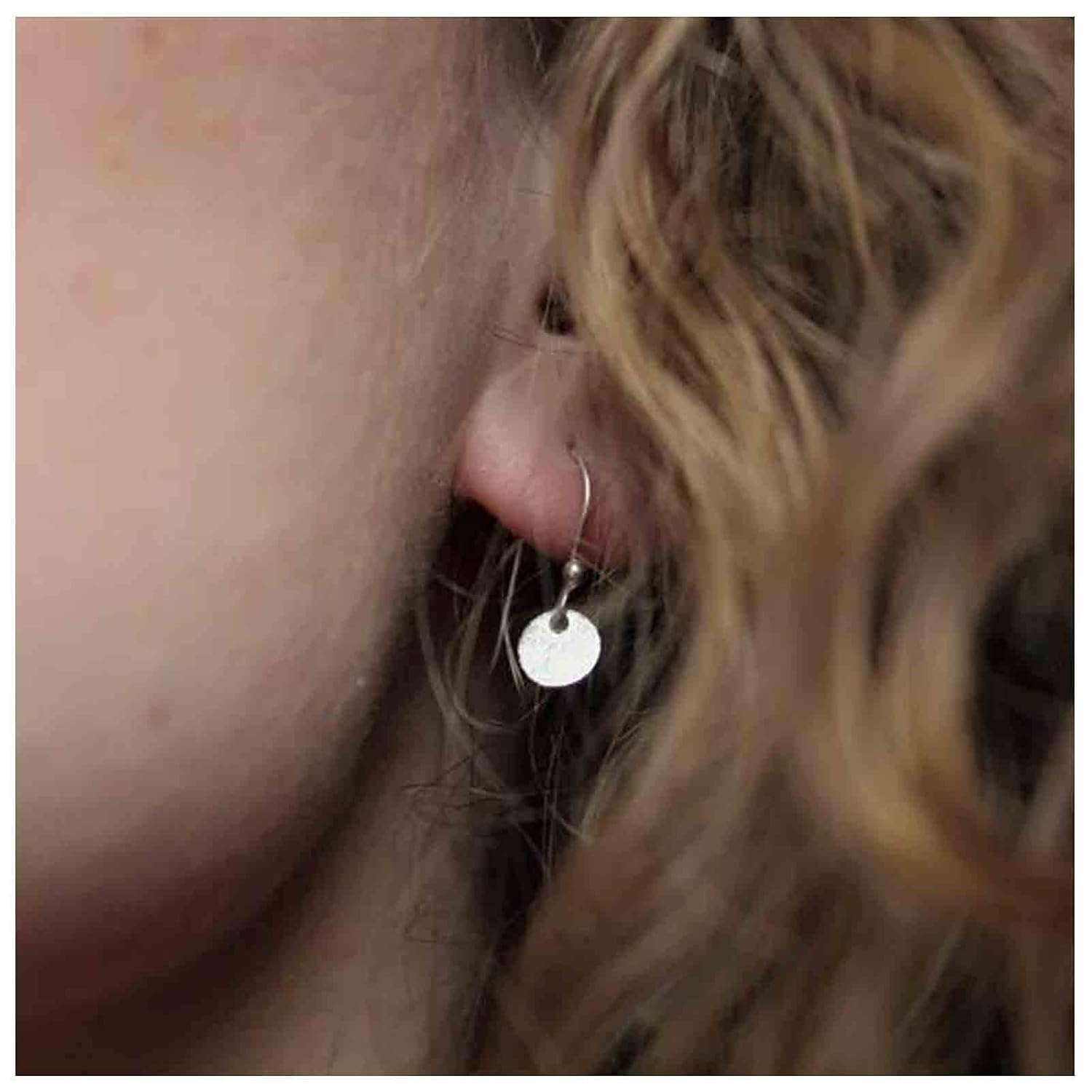 Boho Disc Coin Drop Earrings Tiny Circle Dangle Earrings Silver Smooth Coin Hook Earrings Minimalist Geometric Earrings for Women and Girls