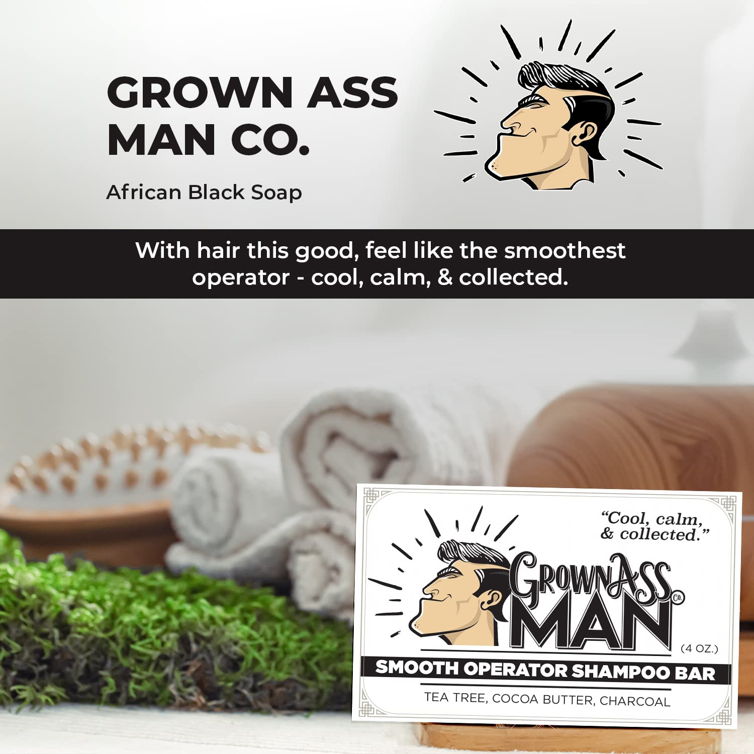 Solid Shampoo Bar Rich Lather 3 in 1: Hair, Beard & Body Wash - Plastic Free & Eco-Friendly, Natural & Organic Clean for All Hair Types, 4oz Bar (Smooth Operator, Single)