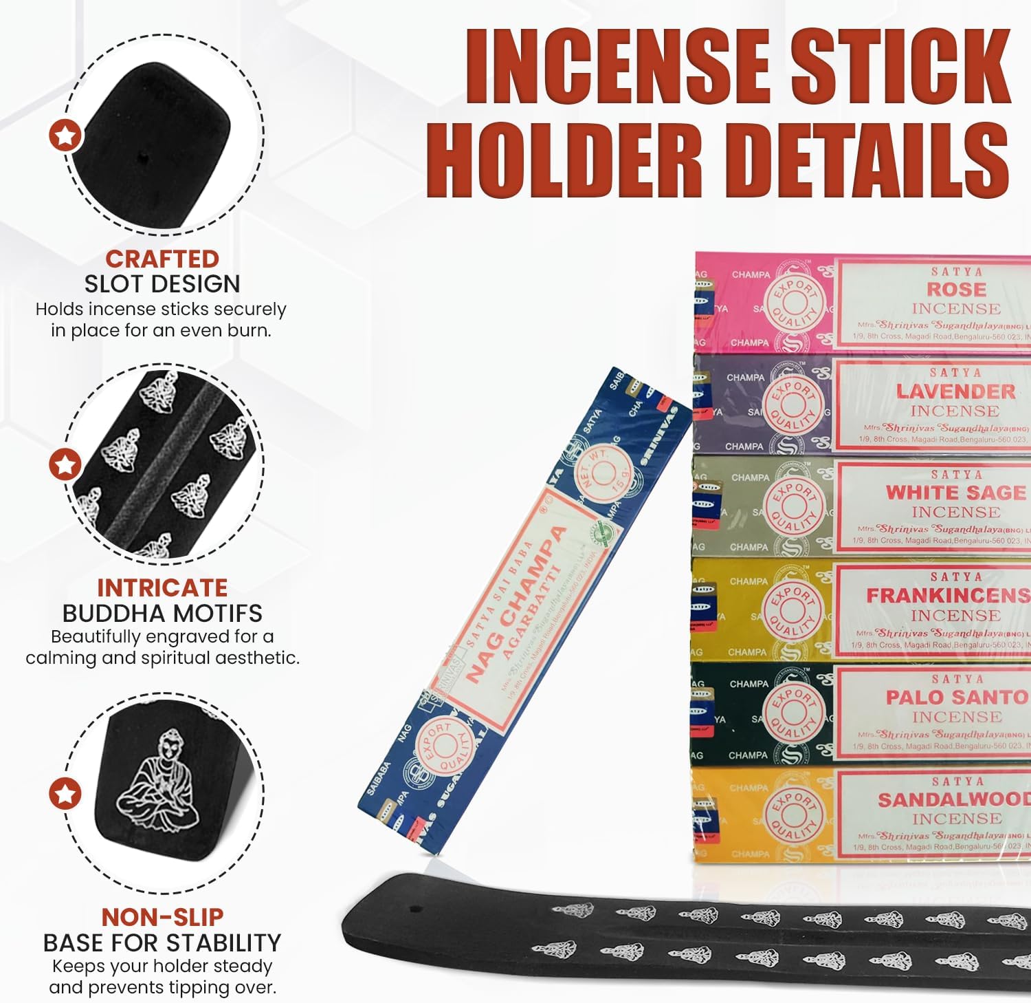 Incense Holder Bundled with Satya Sai Baba Incense Gift Set Nag Champa, White Sage, Lavender, Rose, Palo Santo, Frankincense, Sandalwood 15gms
