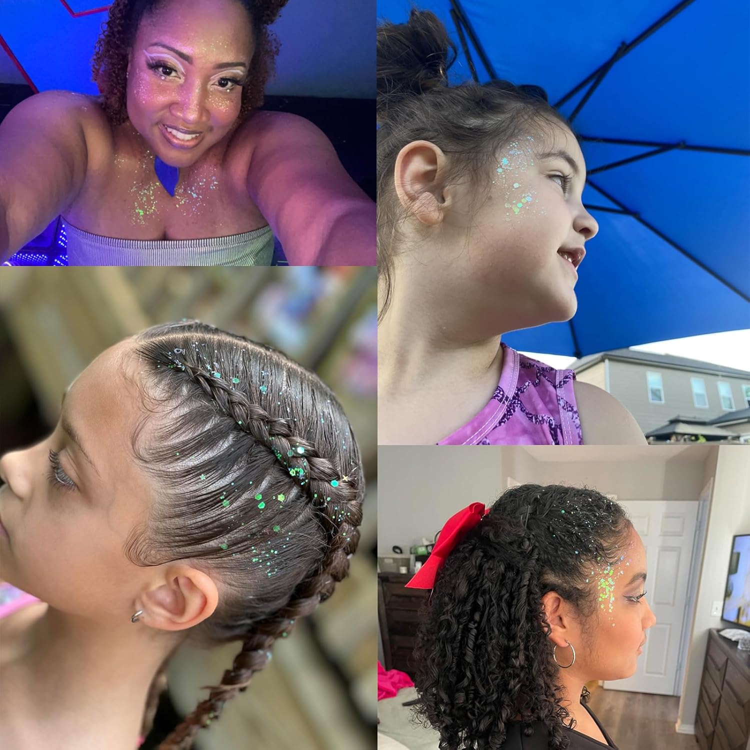 - Safe Ingredients --- Music festival rave glitter are safe and non-irritating,you do not have to worry about glue irritating your skin,gel of the glitter can protect your skin from sequin.All face glitter formulated with non toxic material,safety face body glitter for kids and women,great birthday party decorations for girls