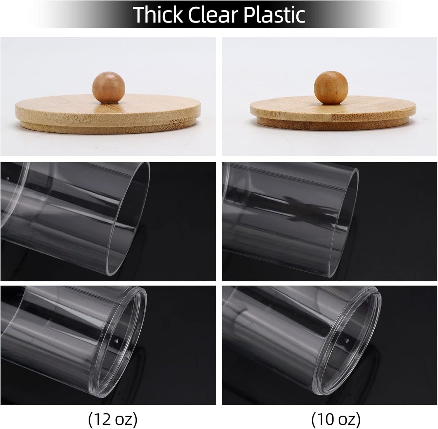 Tbestmax 4 Pack Qtip Holder Dispenser Cotton Ball, Cotton Swab, Floss - 12oz, 10 oz Clear Plastic Apothecary Jars for Bathroom Organizer and Storage Containers (Bamboo Lids)