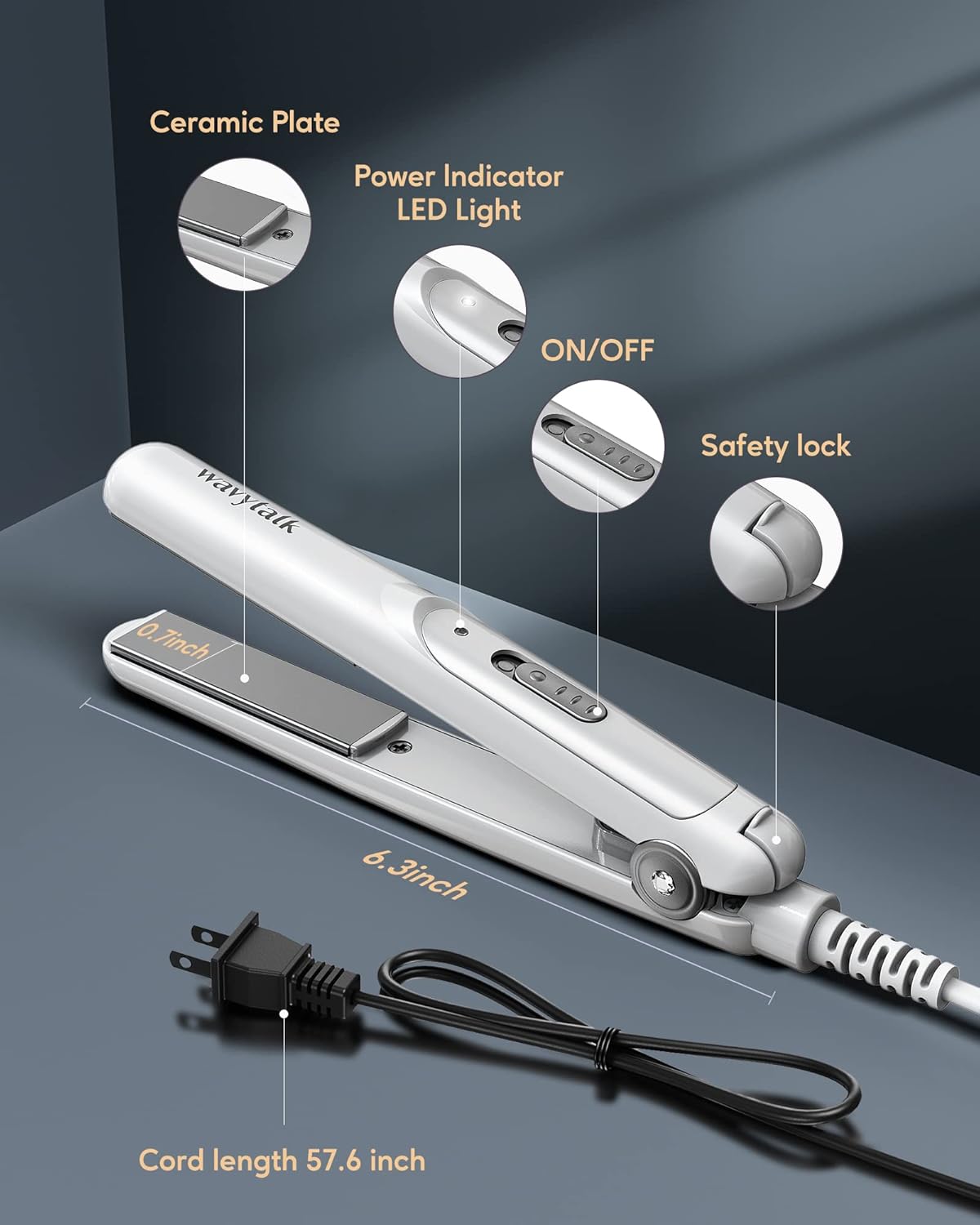 Wavytalk 0.7 Inch Ceramic Mini Hair Straightener - Small Flat Irons for Short Hair, Curls Bangs, Travel Friendly (White)