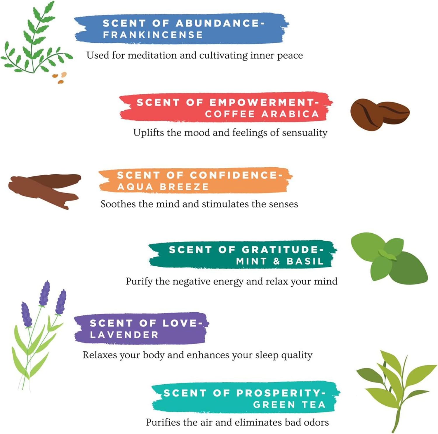 - Scent : Basil,Green Tea,Lavender,Mint