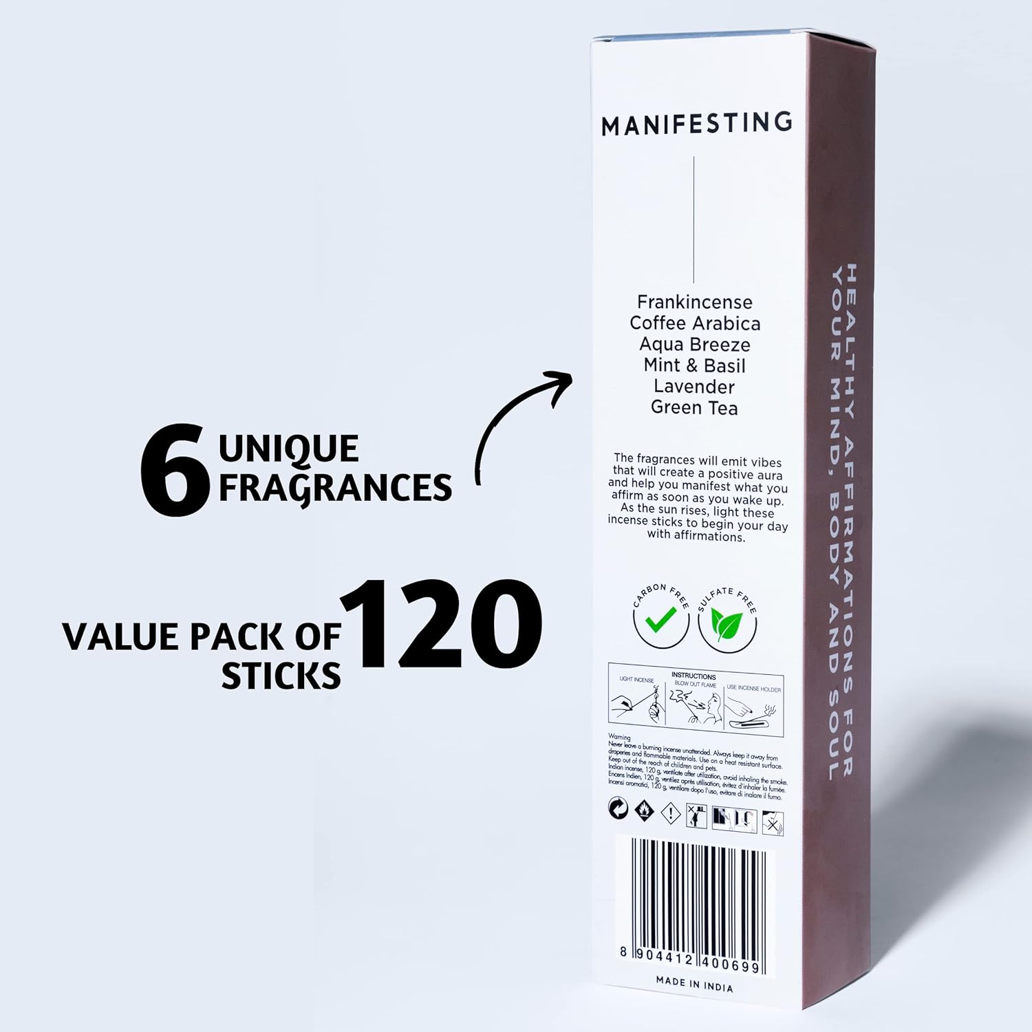 - Fragrance Notes β This incense pack combines uplifting earthy notes with floral undertones with fragrances like Frankincense insense, Coffee inscents, Aqua Breeze, Mint and Basil, Lavender insences, Green Tea Inscents-Sticks. Suitable for meditation rooms, bedrooms, living areas, and even office spaces.