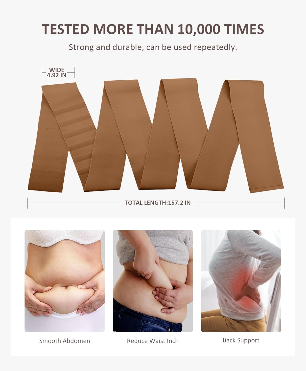 - One Size Fits All: Our waist wrap is designed to accommodate all body types with its one-size-fits-for all size within 23.5 IN-47.5 IN waistline. Measuring 157.2 IN in length and 4.92 IN in width, this bandage wrap offers versatility in snatching your waist, allowing you to adjust the tightness to your preference to your preference for ultimate comfort. Warm tips-Thinner women need to wrap more circles, will appear thick, full-figured women can wrap fewer laps and also have tummy coutrol.