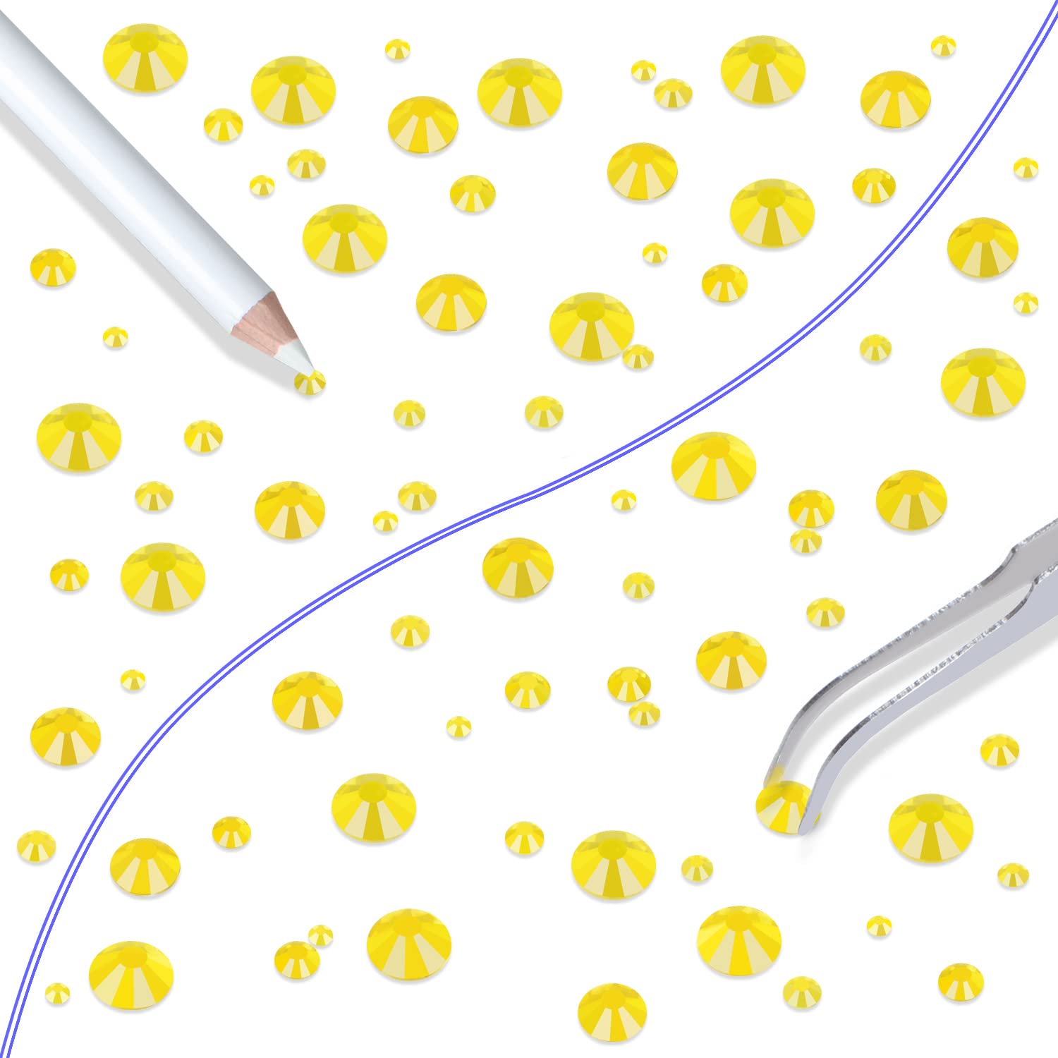 LPBeads 6000 Pieces Citrine Non Hotfix Rhinestones 6 Sizes Round Crystal Glass Flat Back Rhinestones with Tweezers and Picking Pen for Nail Art Crafts Clothes Bags DIY