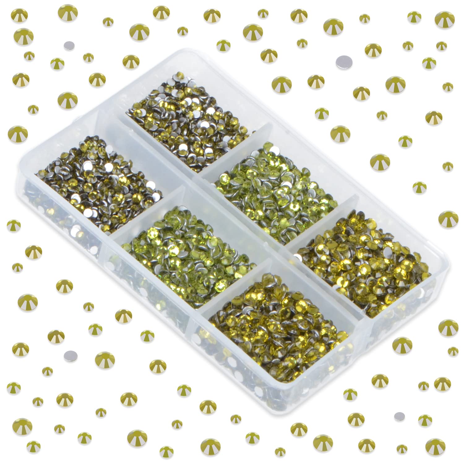 LPBeads 6000 Pieces Olivine Non Hotfix Rhinestones 6 Sizes Round Crystal Glass Flat Back Rhinestones with Tweezers and Picking Pen for Nail Art Crafts Clothes Bags DIY