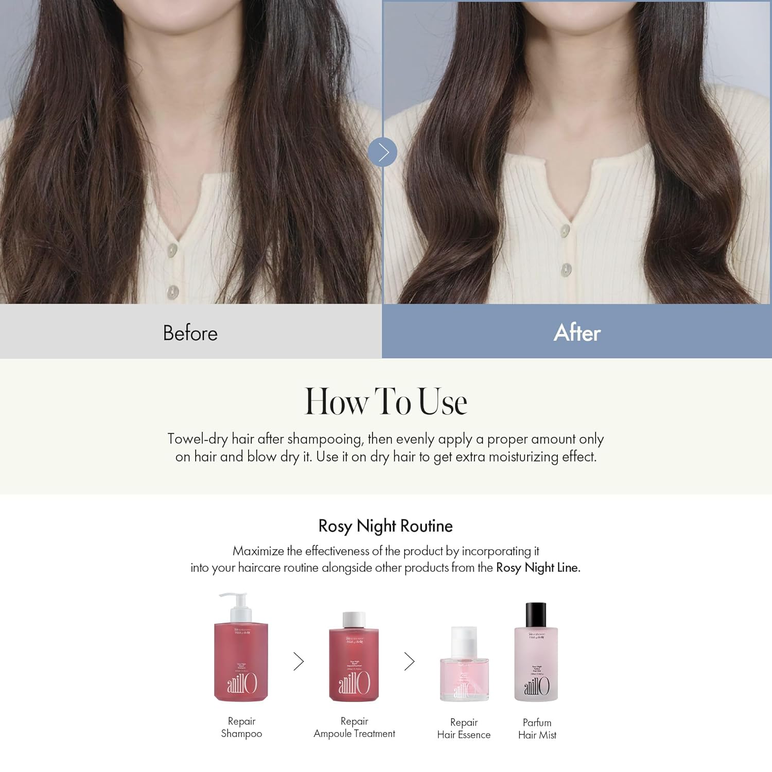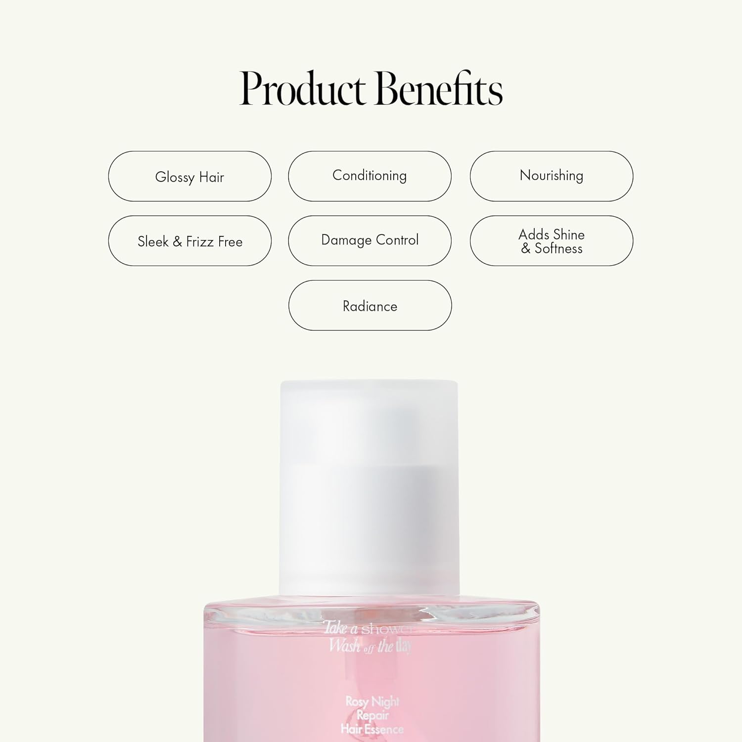 Rosy Night Repair Hair Essence with Damask Rose Extract, Rosehip Oil, Peptide Complex for Dry, Damaged, Frizzy Hair - Musky Floral Scent, Vegan, Paraben-Free 50ml / 1.69 fl. Oz