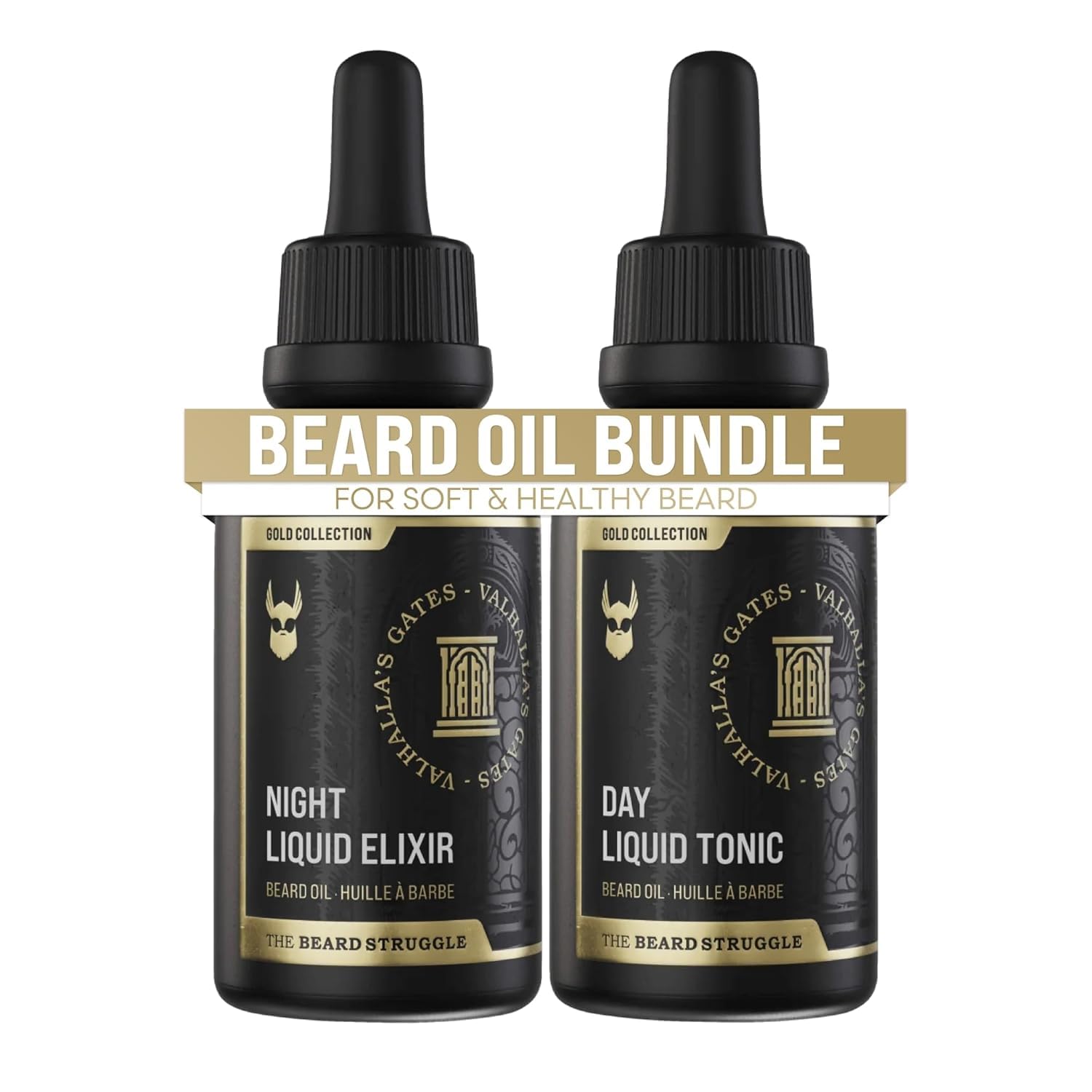 The Beard Struggle Tonic + Elixir Beard Oil Bundle - Gold Collection - Grooming Beard Oil - Softens, Moisturizers, and Strengthens Beard Growth - Pack of 2, Valhalla's Gates