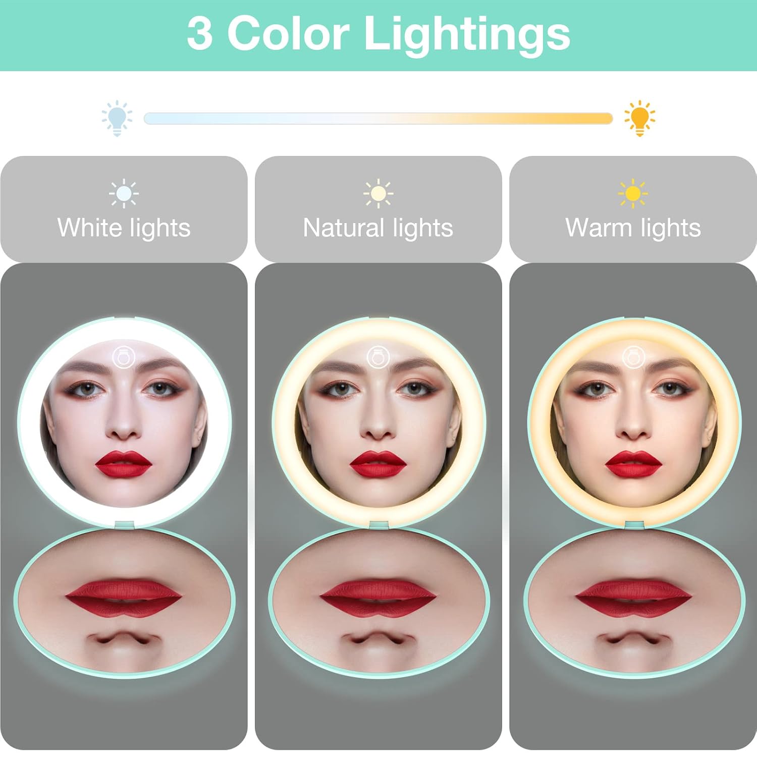 - Magnetic Switch Design:The magnetic switch design of this vanity mirror allows you to easily open it without hurting your nails, and when you close the mirror, the light will automatically turn off, so you don't have to worry about forgetting to turn off the light