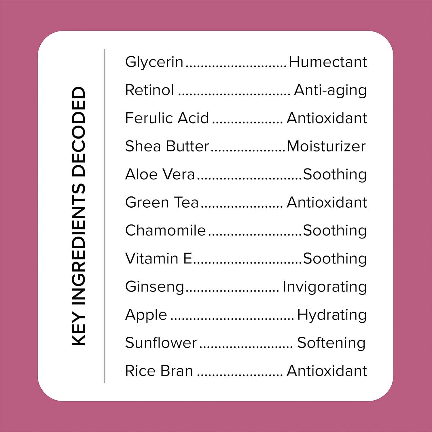 - EFFECTIVE ANTI-AGING INGREDIENTS β Medix 5.5 Retinol Cream is infused with Ferulic Acid, Shea Butter, Vitamin E, & Green Tea, which all work together to effectively firm skin + reduce the appearance of sun damaged skin, wrinkles, fine lines, & crepey skin. Aloe Vera defends against visible redness & irritation. Green Tea + Chamomile guards against environmental damage & reduces puffiness. Combination of ingredients make this Retinol Body Cream non-irritating unlike many other retinol products.