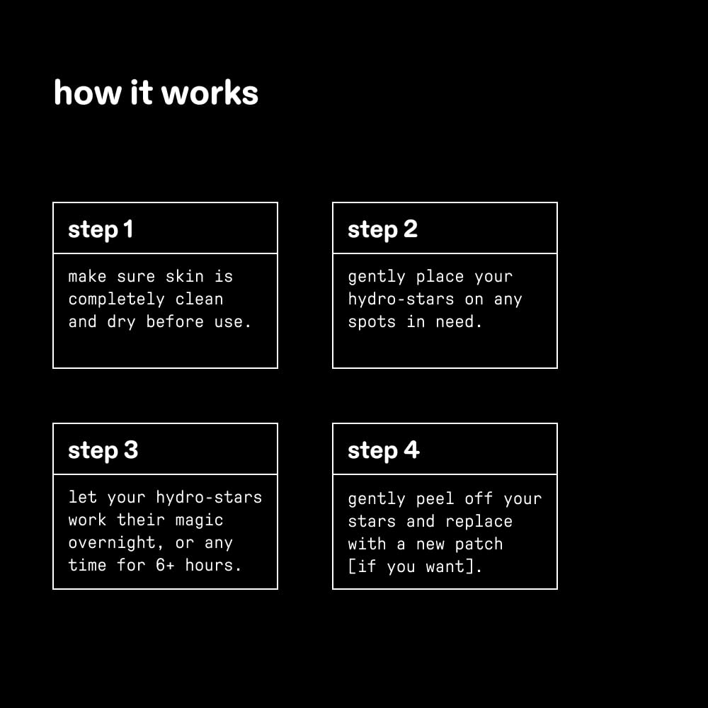 - EASY TO USE: Always apply to clean, dry skin (after cleansing and before moisturizing). Replace with a new star in the morning, or after 6+ hours.