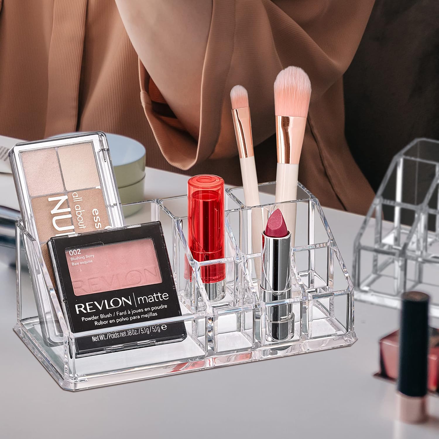 Amazing Abby - Tiffany - 2-Pack Acrylic Cosmetic Organizer, Transparent Plastic Makeup Holder, Compartmented, Shatter-Proof, Perfect Bathroom Vanity Storage Solution for Beauty Supply, Small