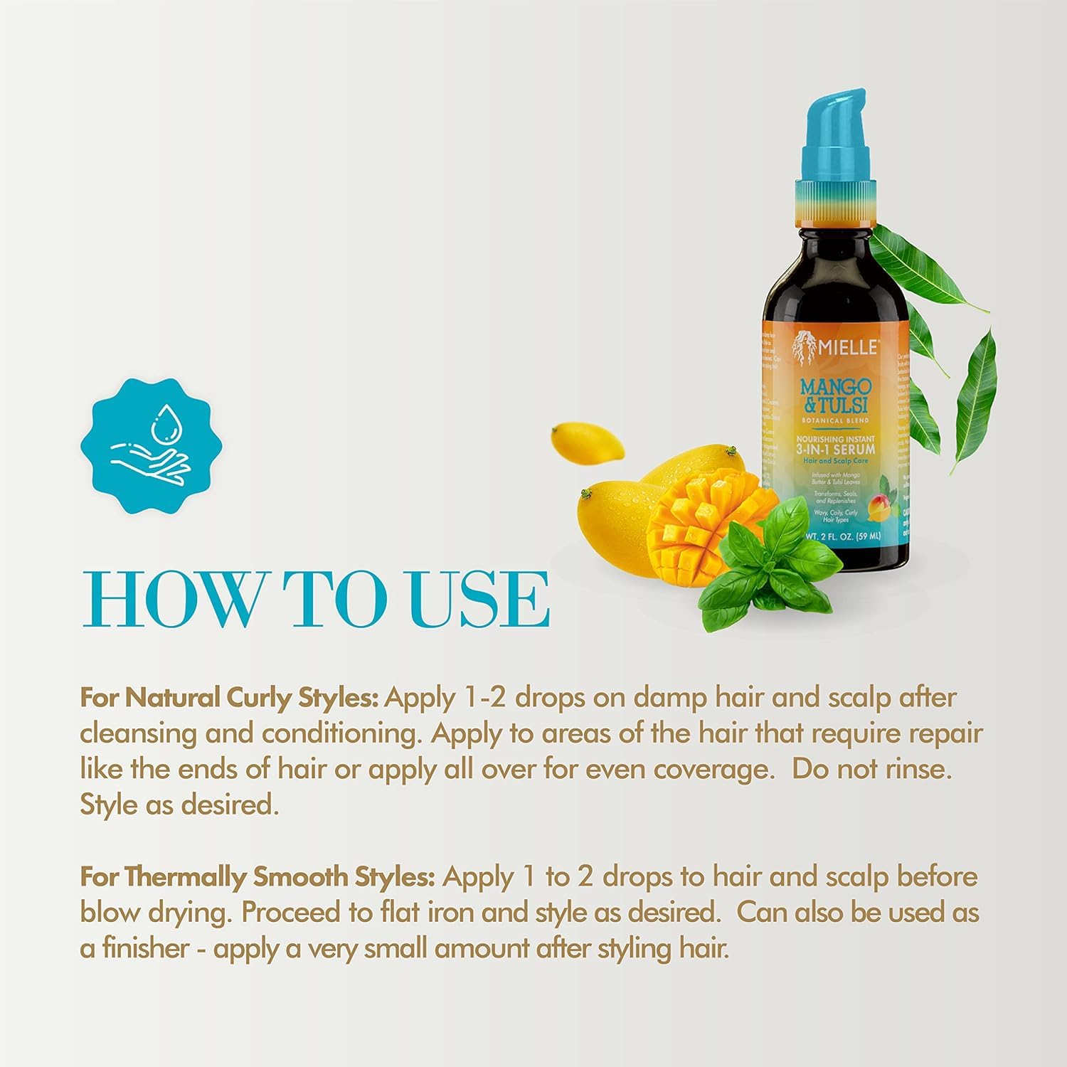 Mielle Organics Mango & Tulsi Nourishing 3-in-1 Hair Serum - Hair & Scalp Serum for Frizz Control, Split Ends & Moisture Balance - Strengthens & Seals Cuticles with Nutrients (12 Fl Oz)