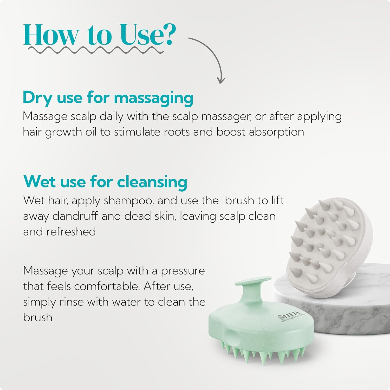 - Scalp Deep Cleansing: The bristles on scalp massager shampoo brush help to exfoliate and remove dirt, oil, and buildup from your scalp and hair, leaving you with a thorough cleanse