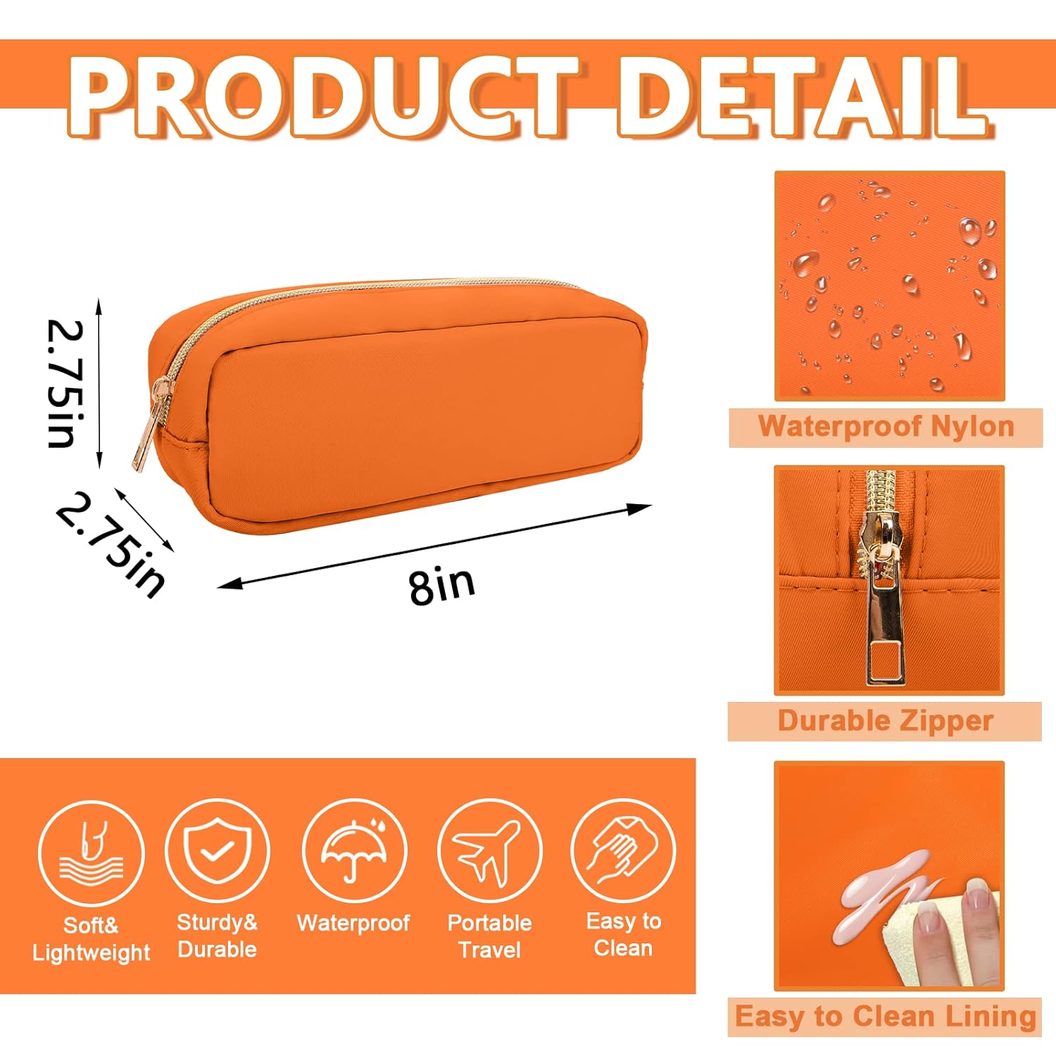- 【Smooth&Sturdy Zipper】The nylon makeup bag has a metal zipper. The smooth and sturdy zipper is perfect for storing your daily essentials and preventing items from falling out of the bag.The smooth and sturdy zipper zipper allows you to have a good sense of use.