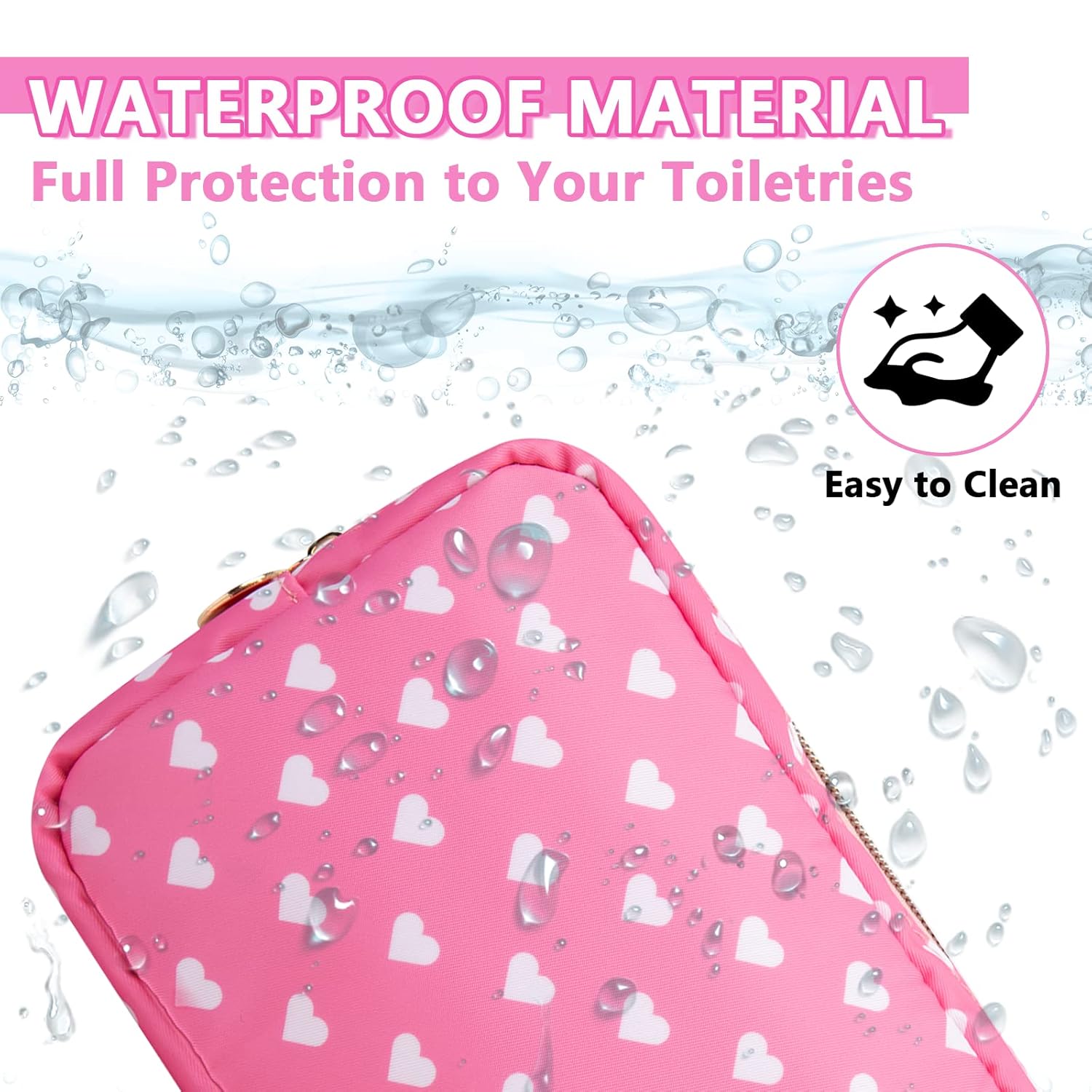 - 【High Quality Material】The cosmetic bag is constructed of lightweight and durable nylon fabric. It is waterproof and easy to clean, helping to protect your beauty, cosmetics and toiletries from water spillage accidents.It will not lose color after the wash.