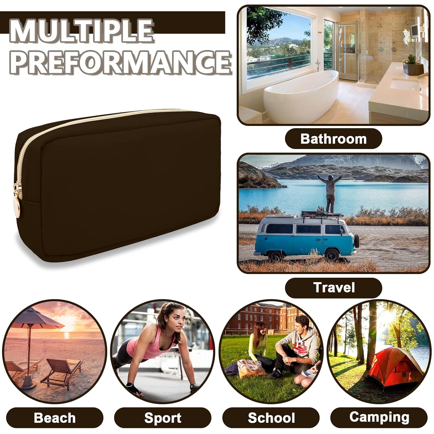 Small Makeup Pouch for Purse, Nylon Travel Toiletry Storage Pouch Cute Preppy Cosmetic Bag for Women Girls, Waterproof Makeup Organizer Skincare Bag Purse with Zipper (Small-Chocolate)