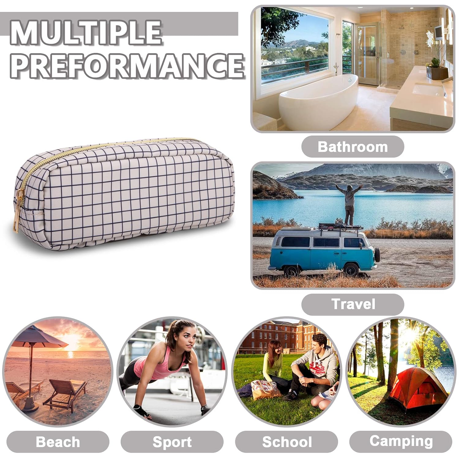 - 【Multi-purpose】The preppy makeup bag makes it easy to pack and carry cosmetics, jewelry, sanitary napkins, brushes, pencils, small electronic accessories, toiletries, medications, tools or other travel essentials. It's a great bag for school, travel, parties, camping, beach, gym, etc.