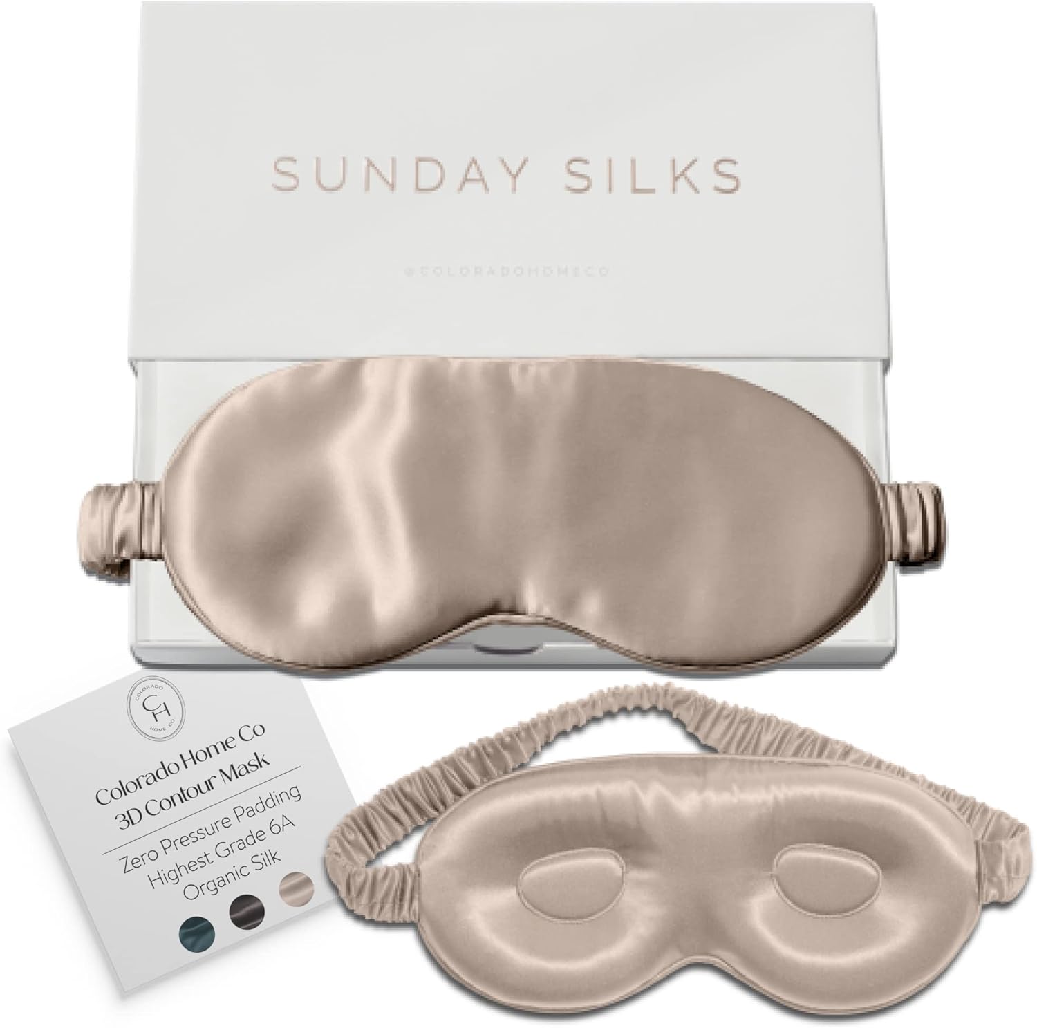 - 3D Silk Mask- A perfect zero pressure contoured sleep mask that frames your eye with silk cups for a completely dark environment. Premium silk skims over skin for better beauty sleep. An adjustable elastic silk lined band creates a secure fit for men and women.