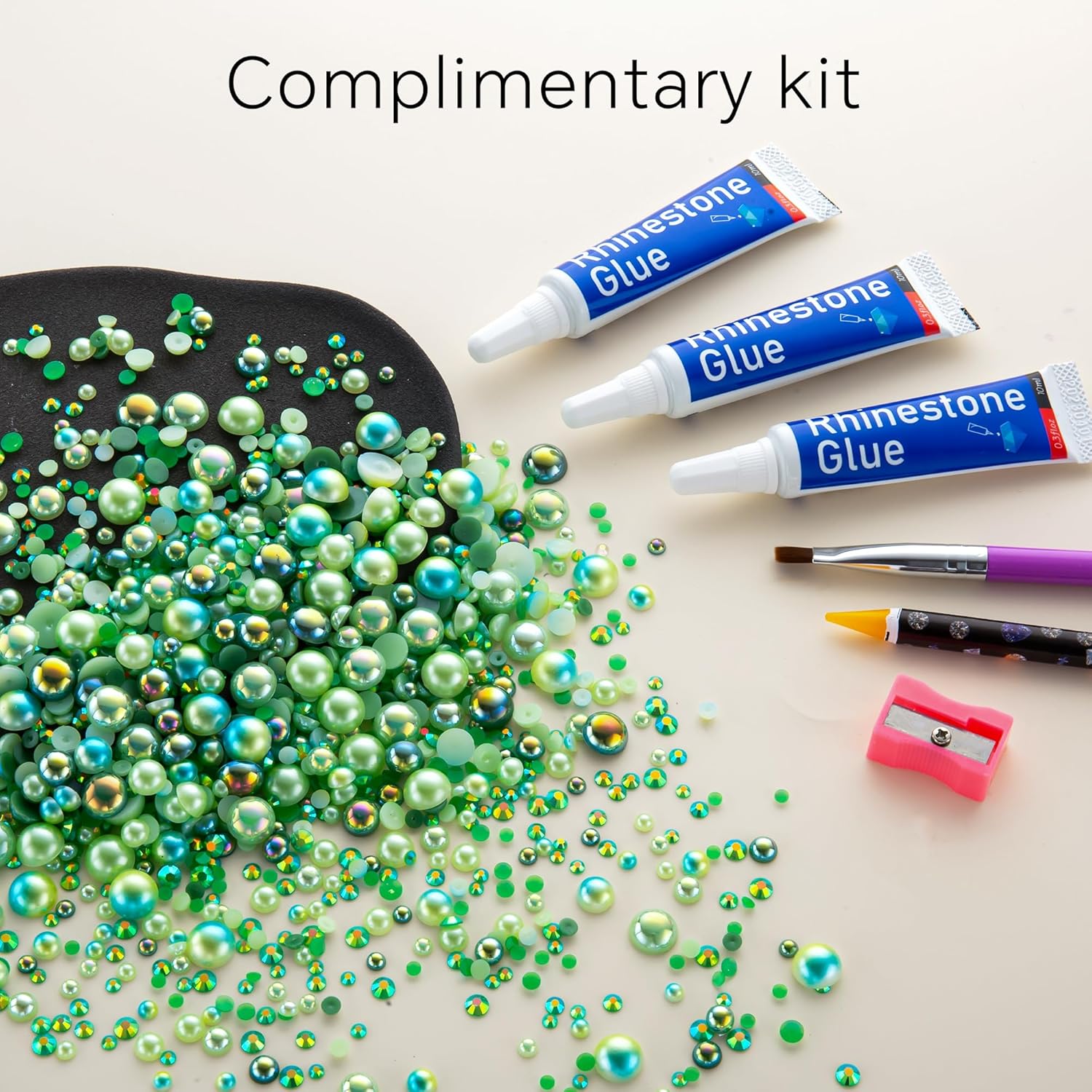 - What You Will Receive: 60g(30g*2)mixed size flat back pearls and rhinestones. 3*Rhinestone Glue. 1* wax pencil for rhinestones. 1*Pencil sharpener(color random). The mix half round pearls and rhinestones can make more beautiful handicrafts for your friends, parents, yourselfs on any festivals.If you need a mixed size pack of pearl rhinestones