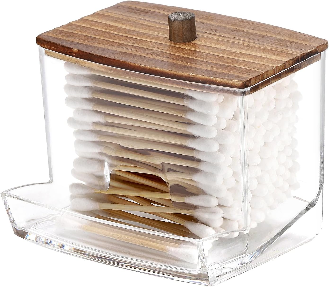 Tbestmax 10oz Qtip Holder Dispenser with Black Wood Lids, Big Cotton Swab Holder Bathroom Accessories Organizer for Storage-Qtips Cotton Ball, Floss Container