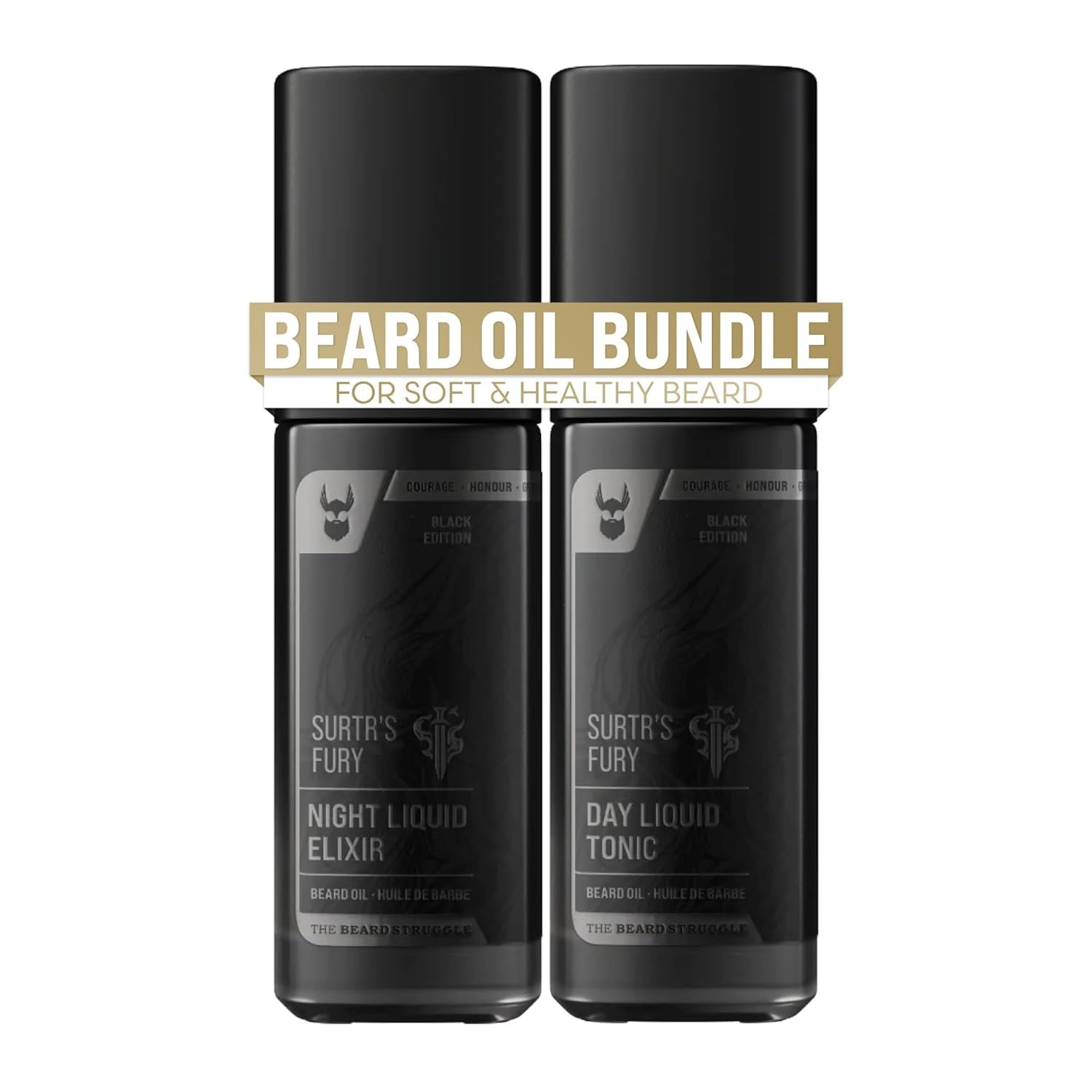 The Beard Struggle Tonic + Elixir Beard Oil Bundle - Platinum Collection - Grooming Beard Oil - Softens, Moisturizers, and Strengthens Beard Growth - Pack of 2, Surtr's Fury